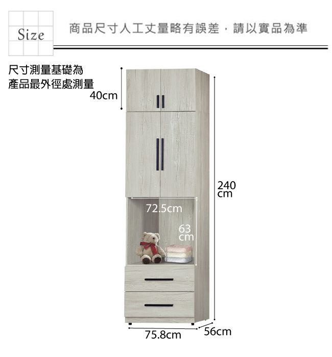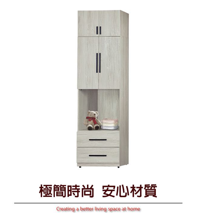- ◆產品名稱:【綠家居】夏艾亞淺橡2.5尺四門二抽中空加高衣櫃組合