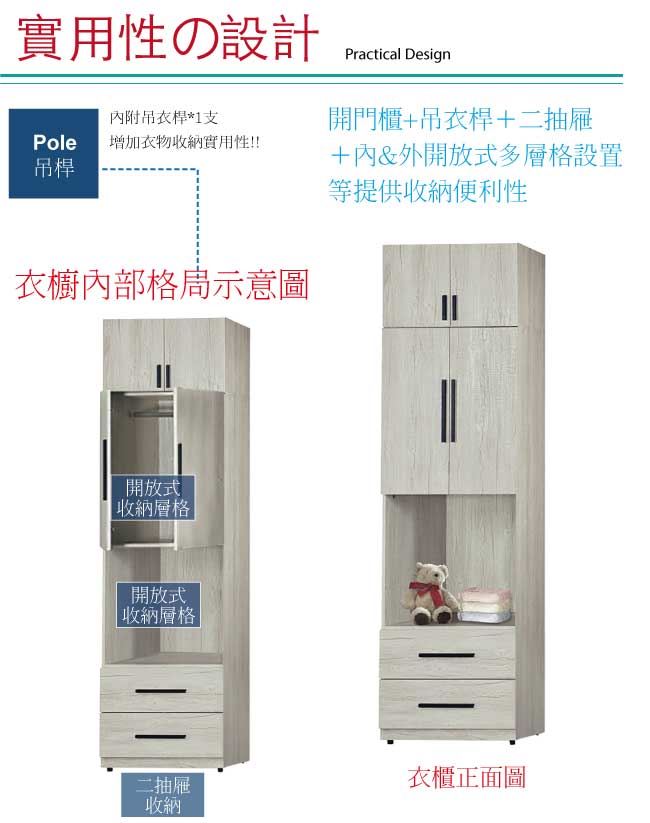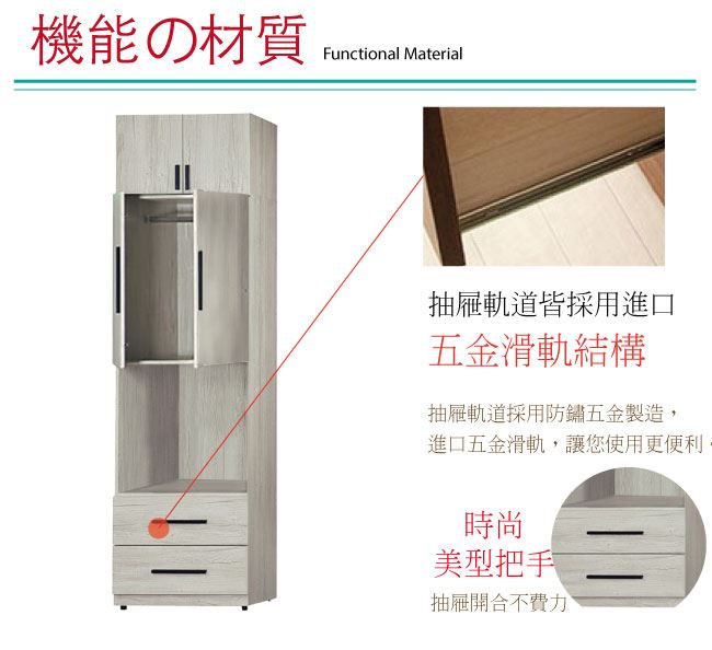 - 開門櫃+二抽屜+吊衣桿