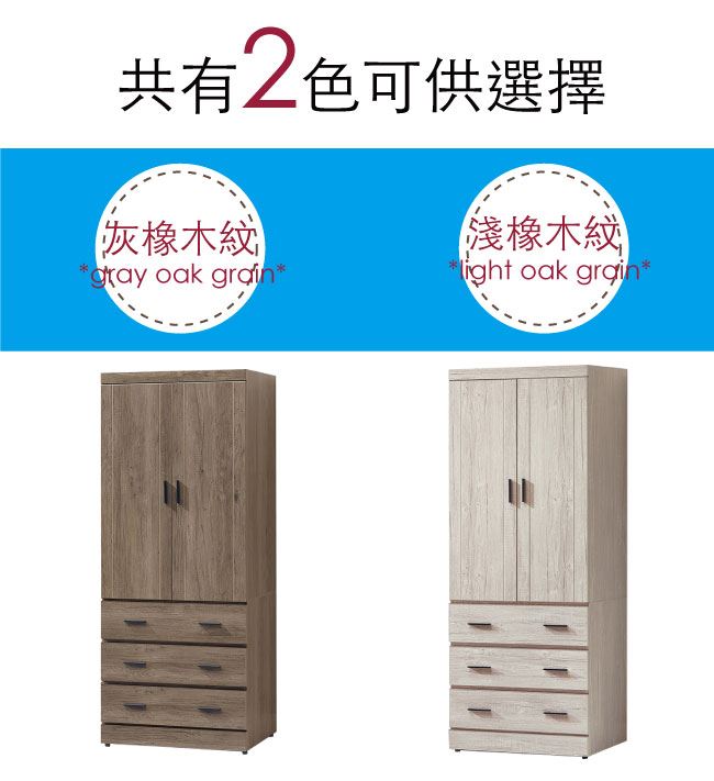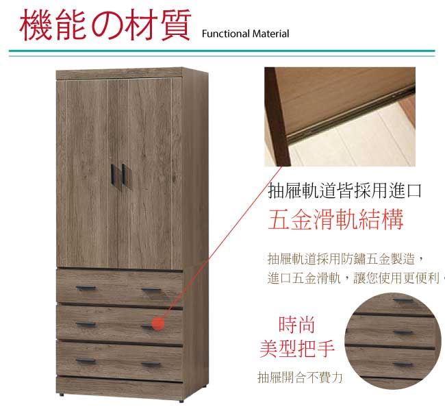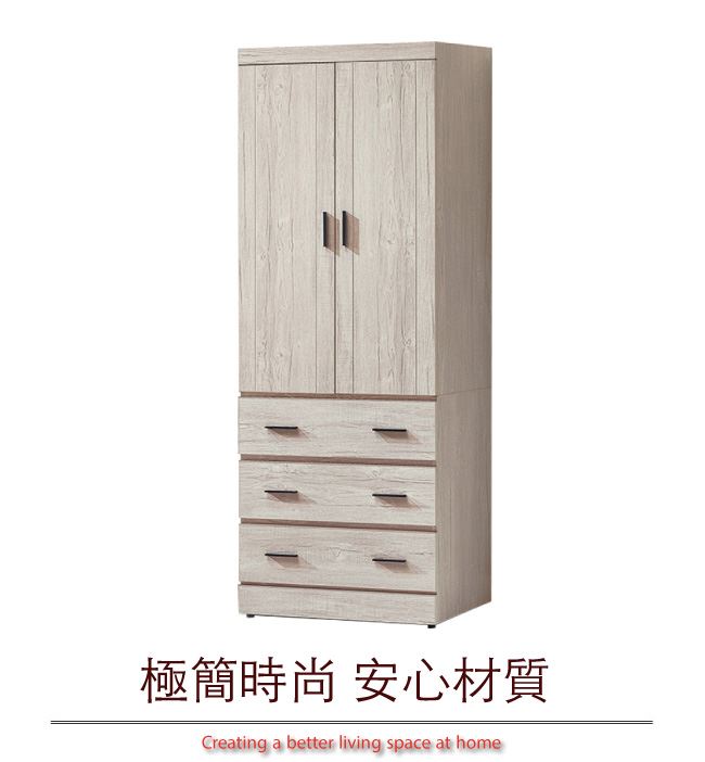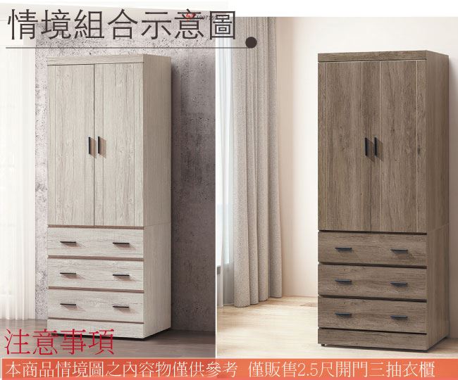 【綠家居】卡地2.5尺二門三抽衣櫃(二色可選)