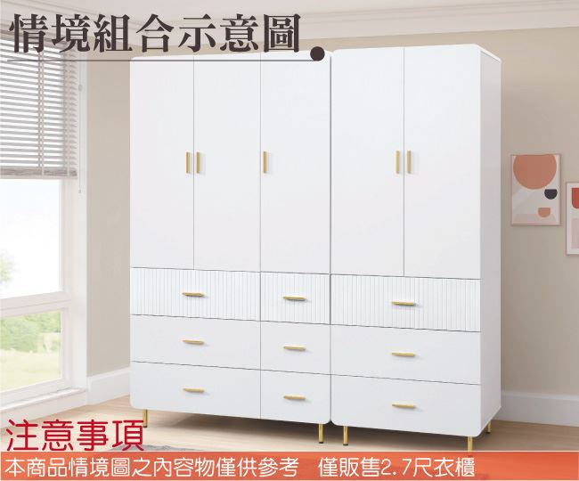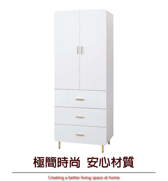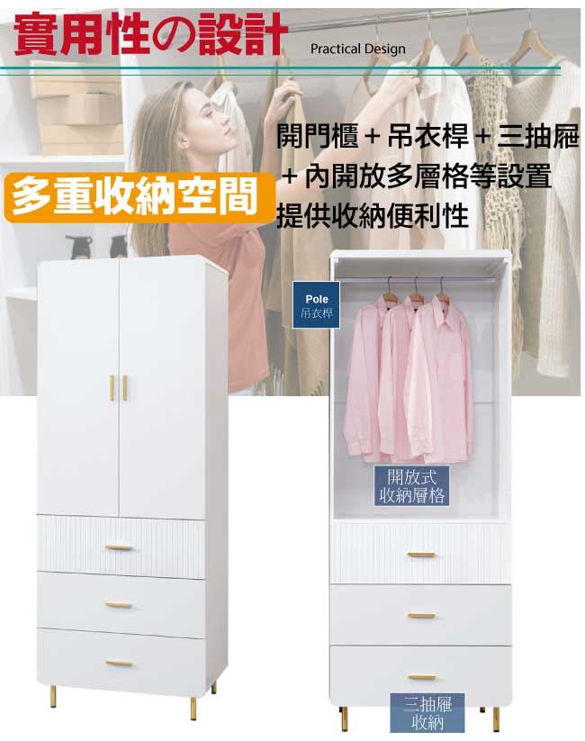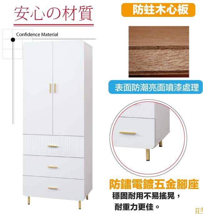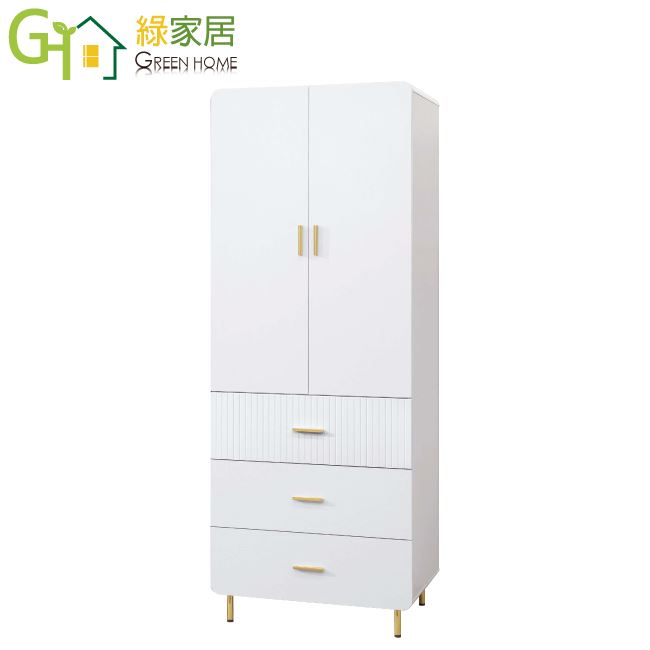 【綠家居】培亞輕奢白2.7尺二門三抽衣櫃