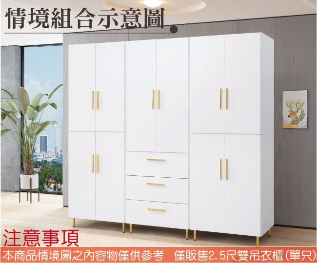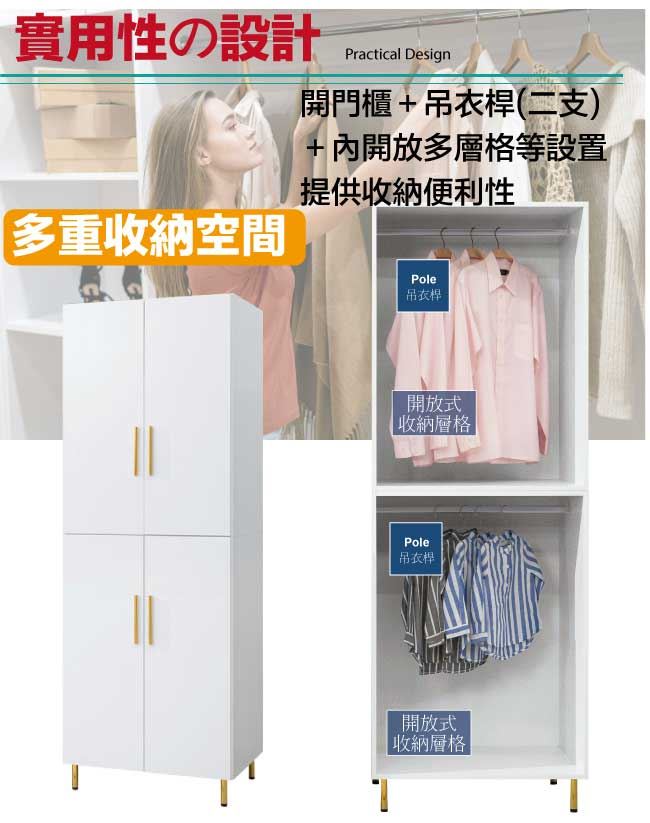 【綠家居】溫荷克輕奢白2.5尺四門雙吊衣桿衣櫃