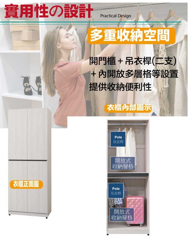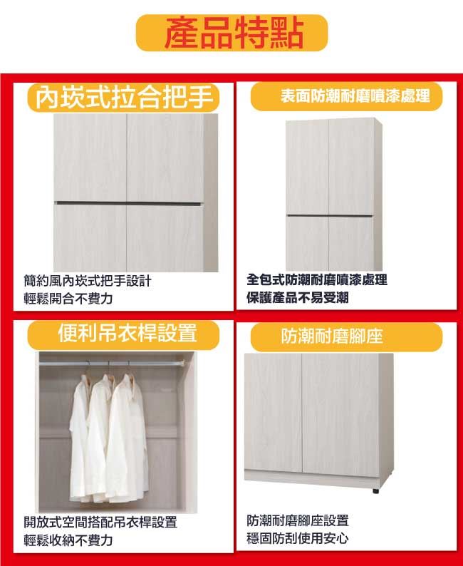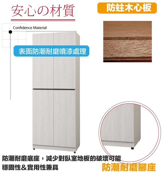 【綠家居】剛果2.5尺四門雙吊衣桿衣櫃
