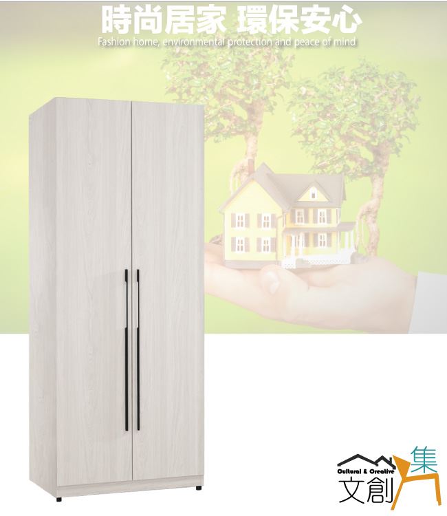 商 品 介 紹 | 【綠家居】布沙2.7尺二門雙吊衣櫃/收納櫃 淺橡木紋色系+現代簡約風格+安心材質製造,整體採用防蛀木心板+防潮耐磨腳座+防夾手緩衝門片五金等安心材質製造,產品外層採用防潮耐磨噴漆處理搭配採用開門櫃+雙吊衣桿+內開放式層格等收納空間設計,全由專人配送到家,專業安心服務,替你省下更多時間! 【商品特色】 淺橡木紋色系+現代簡約風格+安心材質製造,使用放心+搭配居家更便利 採用防蛀木心板+防潮耐磨腳座+防夾手緩衝門片五金等安心材質製造 產品外層採用防潮耐磨噴漆處理 採用開門櫃+雙吊衣桿+內開放式層格等收納空間設計 此商品不需要DIY組立,此商品為組立後之成品 品質保證、專業設計、貼心服務 全由專人配送到家,專業安心服務,替您省下更多時間 |