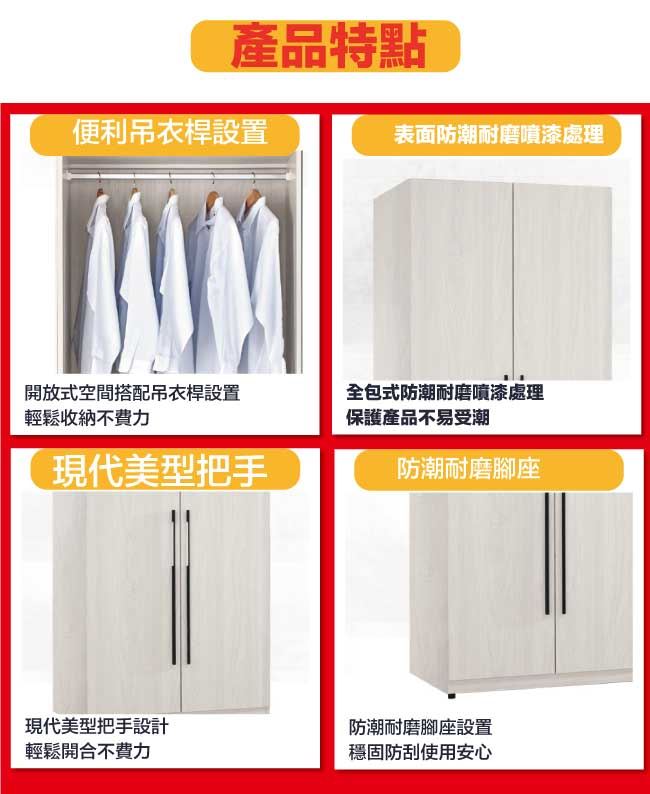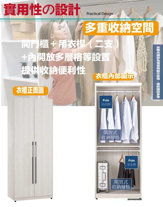 - 開門櫃+雙吊衣桿+內開放式層格