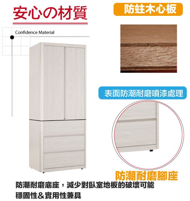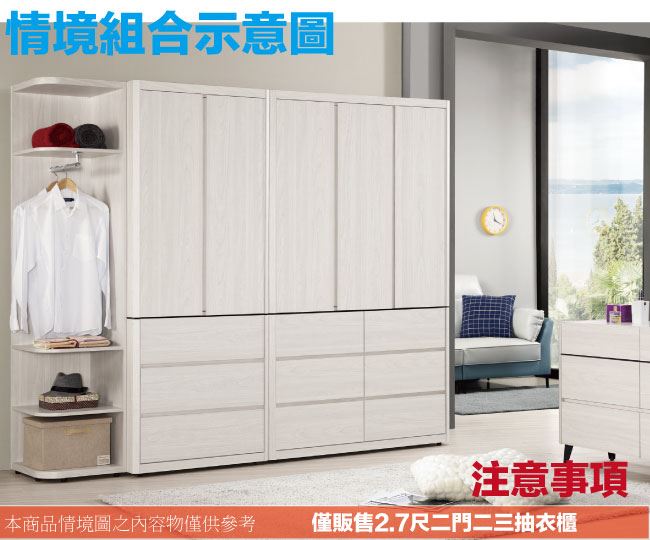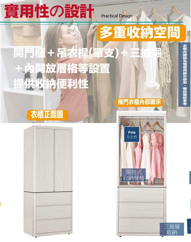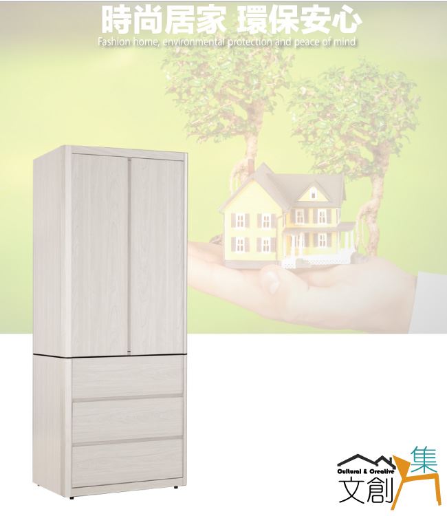 【綠家居】卡摩帝2.7尺二門三抽衣櫃/收納櫃