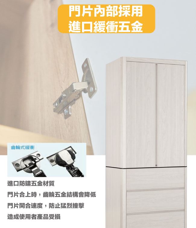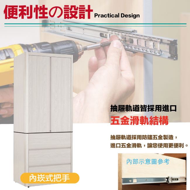 - 五金滑軌結構+防夾手緩衝五金