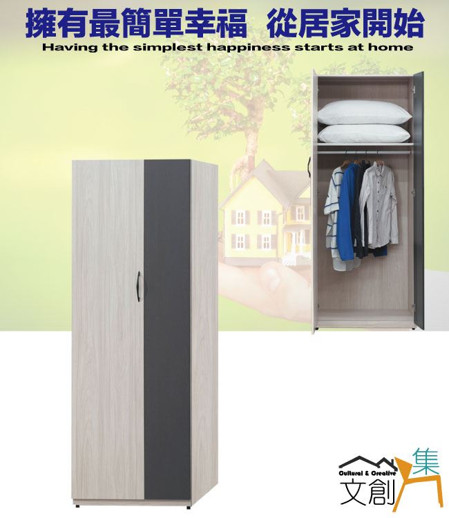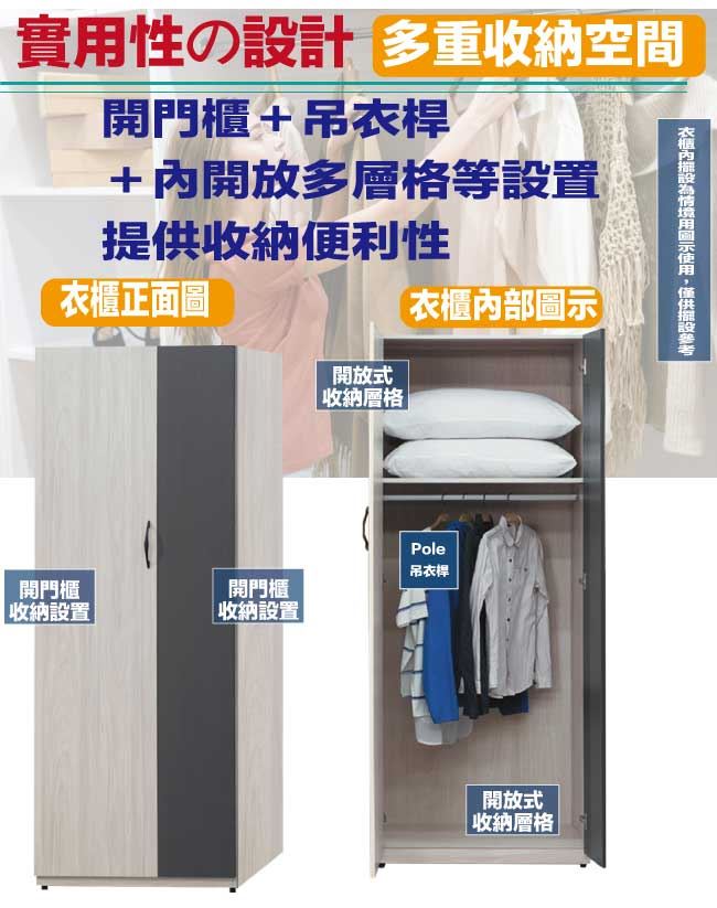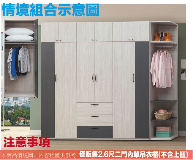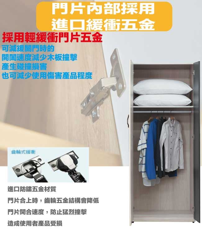 【綠家居】卡戴珊雙色2.6尺二門內單吊衣櫃