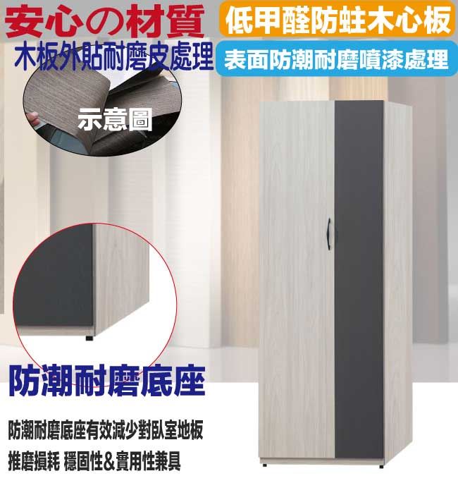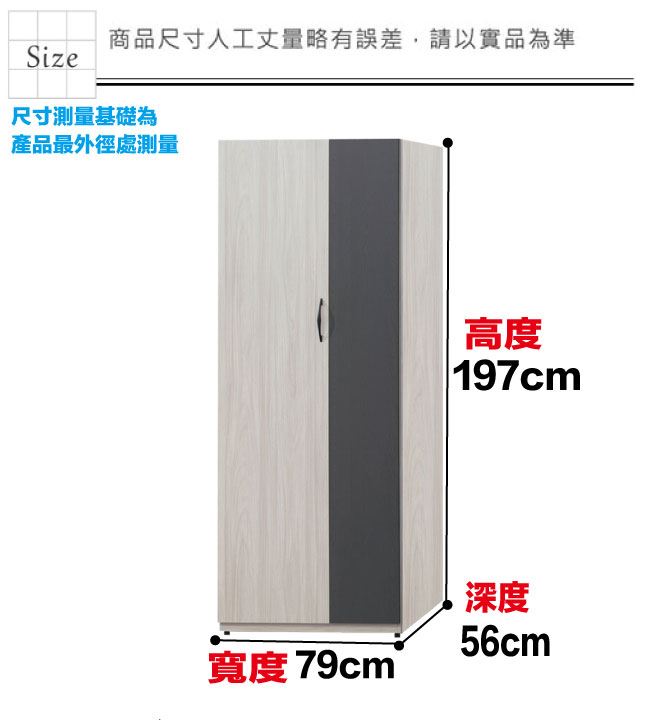 材質 | ◆產品名稱:【綠家居】卡戴珊雙色2.6尺二門內單吊衣櫃- 尺寸:(寬)79x(深)56x(高)197/公分