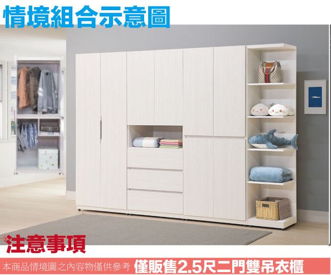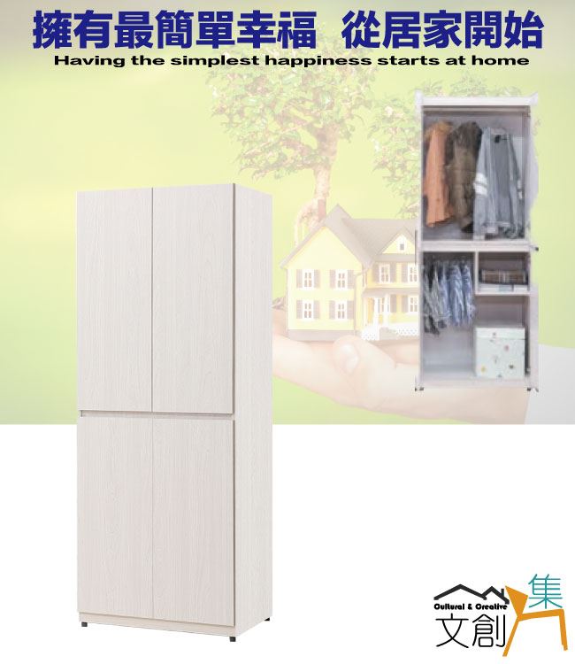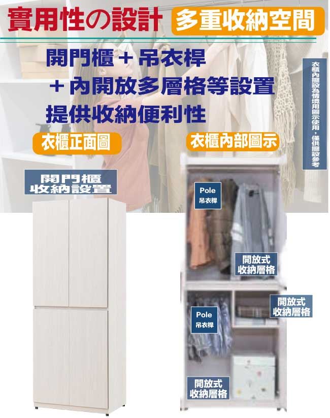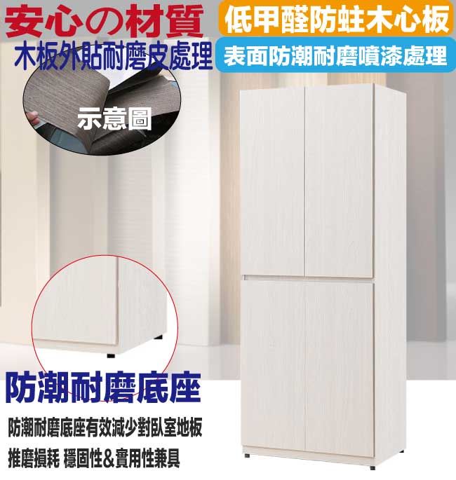 【綠家居】萊迪2.5尺四門內雙吊衣櫃