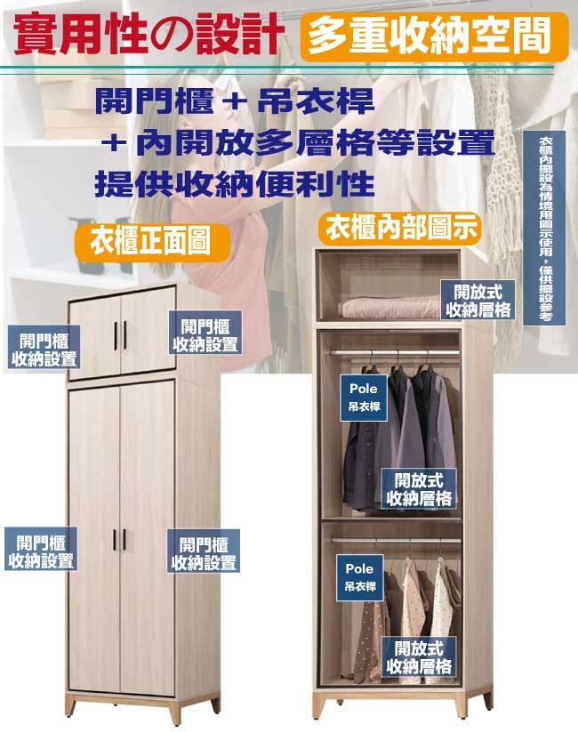 開門櫃+吊衣桿+內開放層格