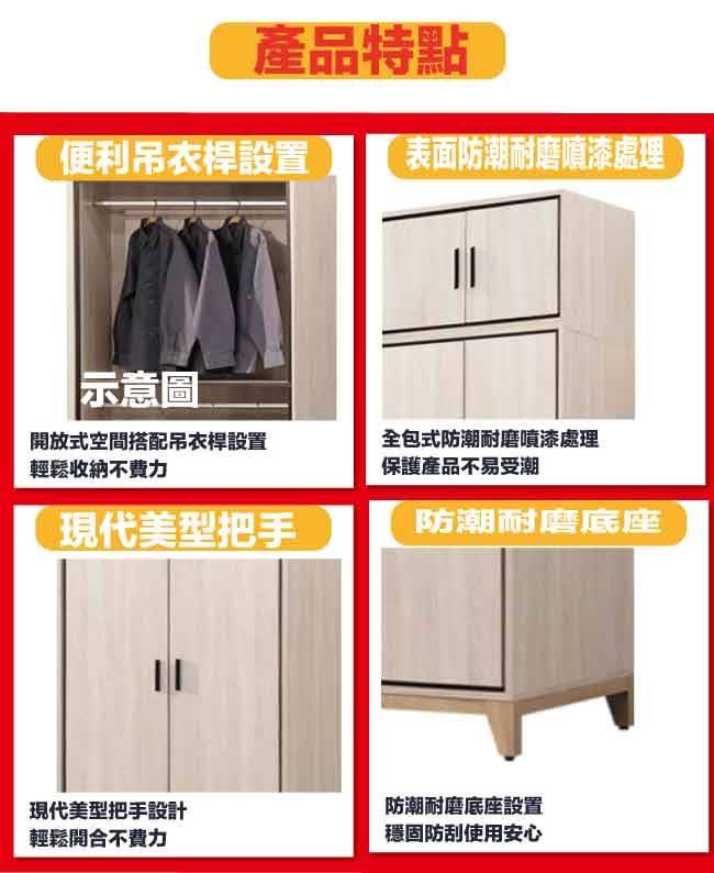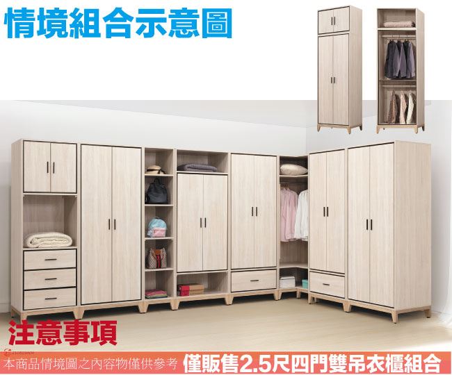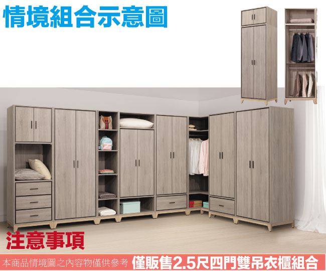 【綠家居】悅卡2.5尺四門雙吊加高衣櫃組合(二色可選)