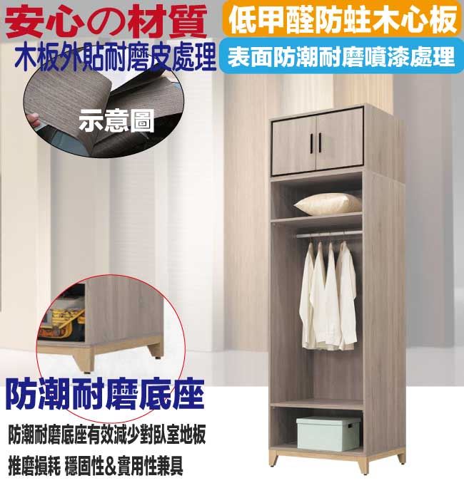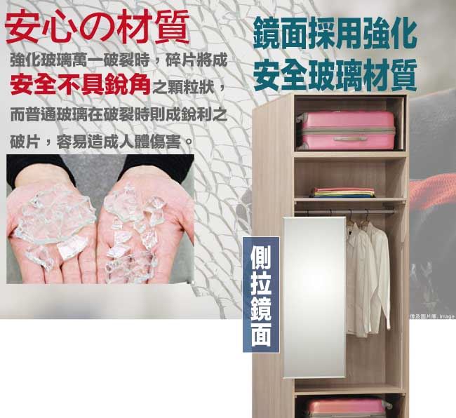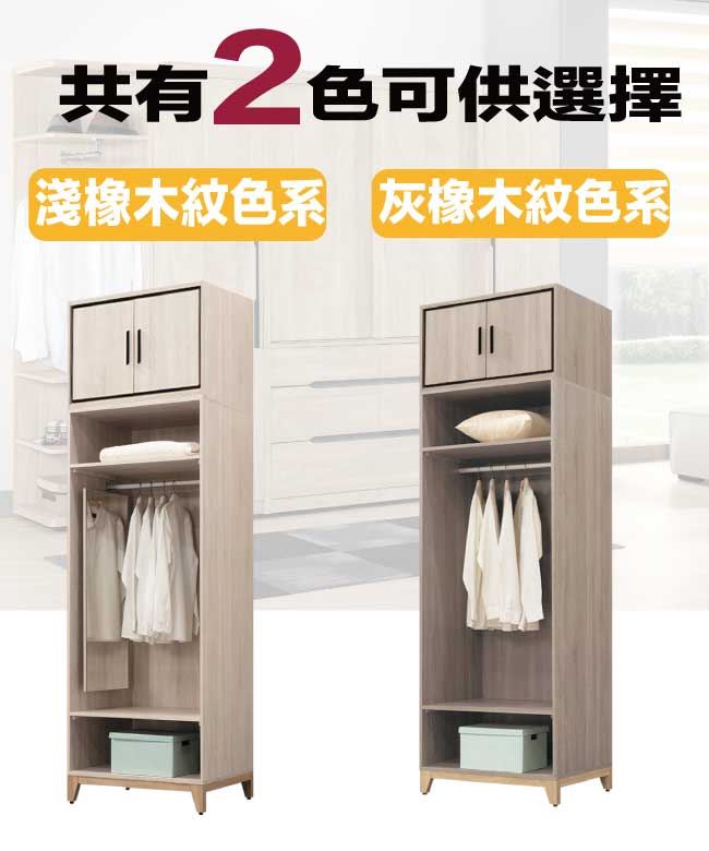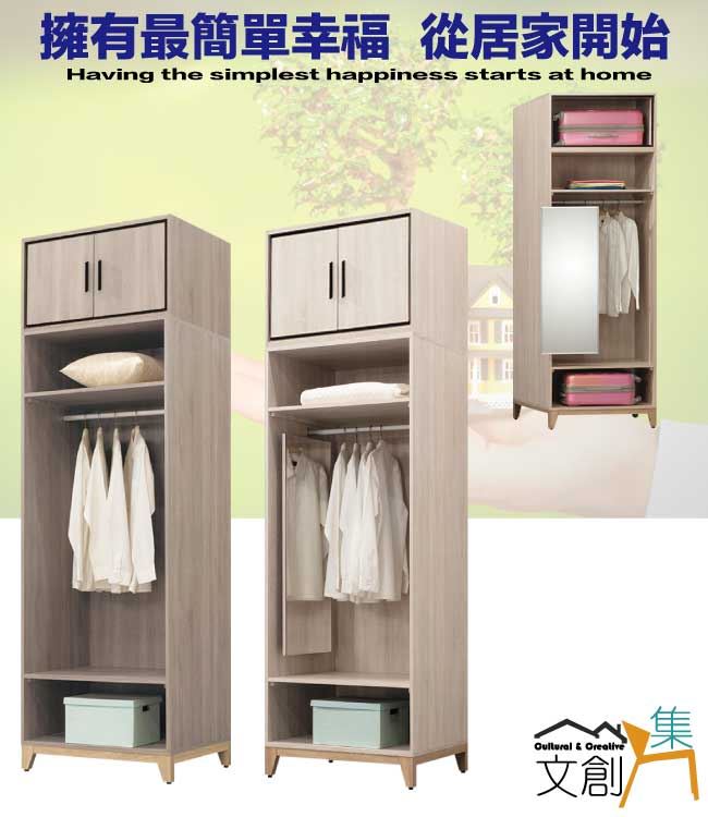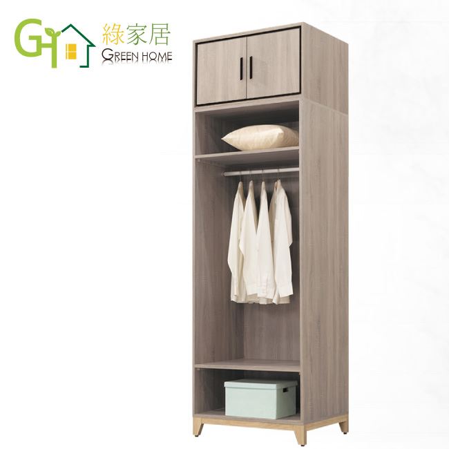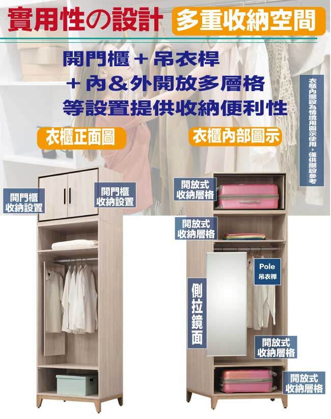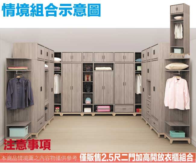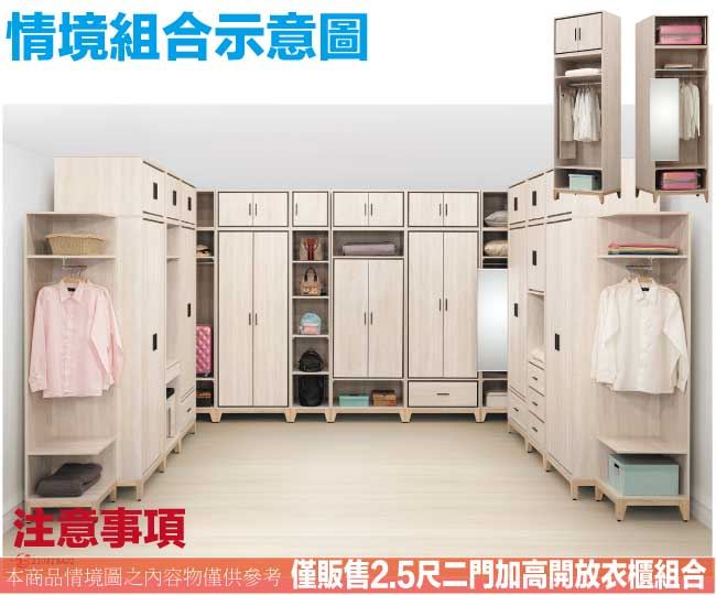 【綠家居】悅卡2.5尺二門開放鏡面加高衣櫃組合(二色可選+內含側拉鏡面)