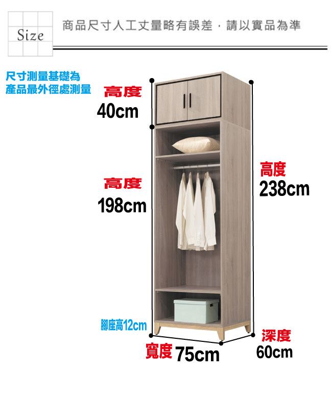 材質 | ◆產品名稱:【綠家居】悅卡2.5尺二門開放鏡面加高衣櫃組合(二色可選+內含側拉鏡面) 尺寸:(寬)75x(深)60x(高)238/公分 ◆材質: 材質:防蛀木心板+防潮耐磨底座+防夾手緩衝門片五金+強化玻璃鏡面 噴漆:防潮耐磨噴漆處理 |