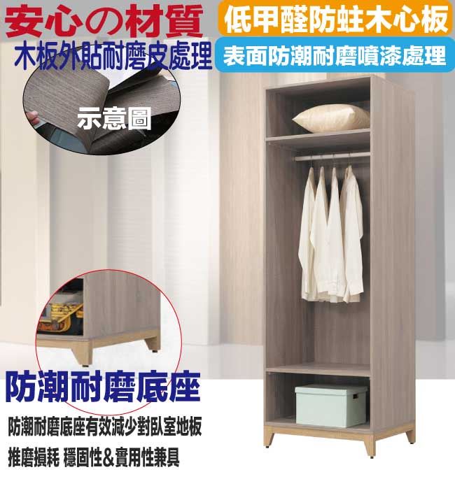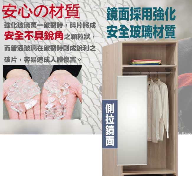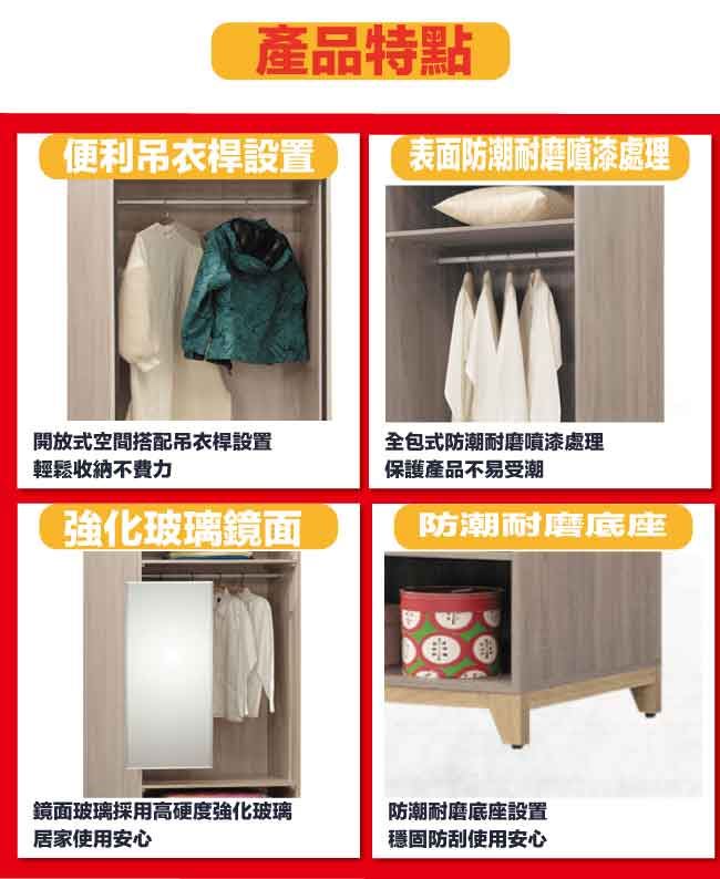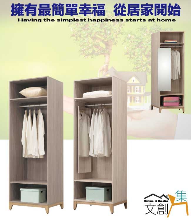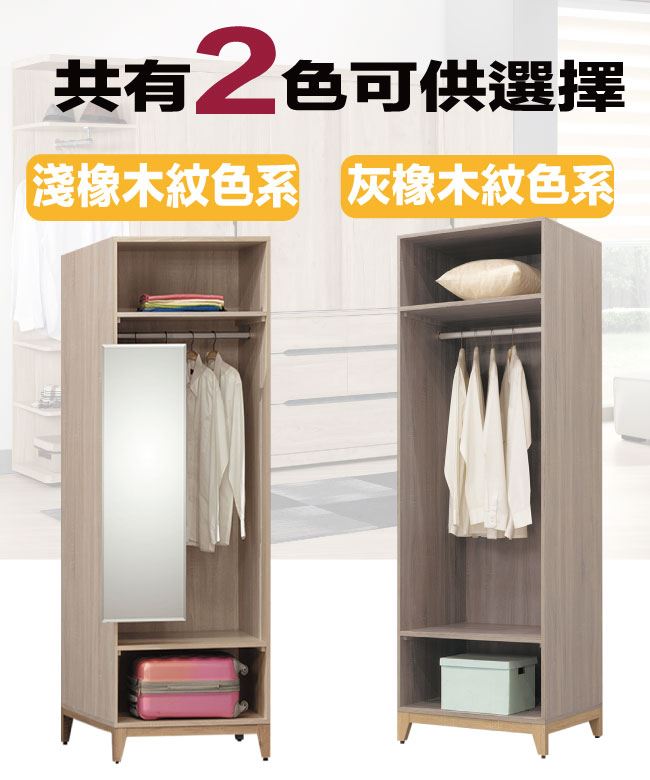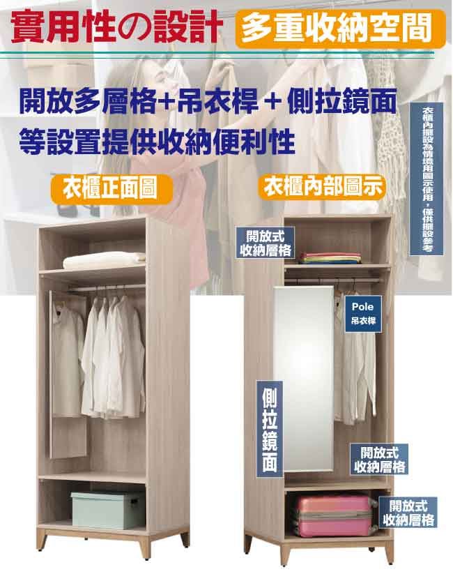 【綠家居】悅卡2.5尺開放式鏡面衣櫃(二色可選+內含側拉鏡面)