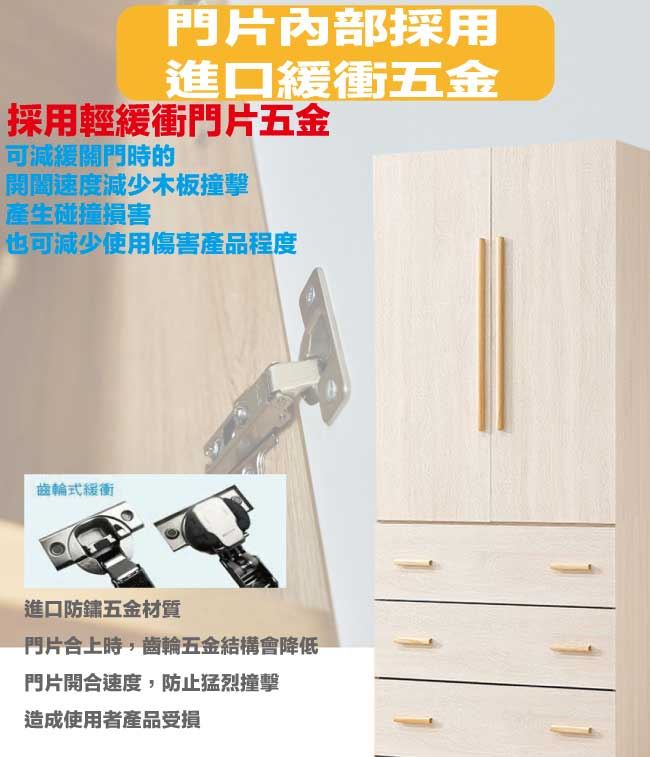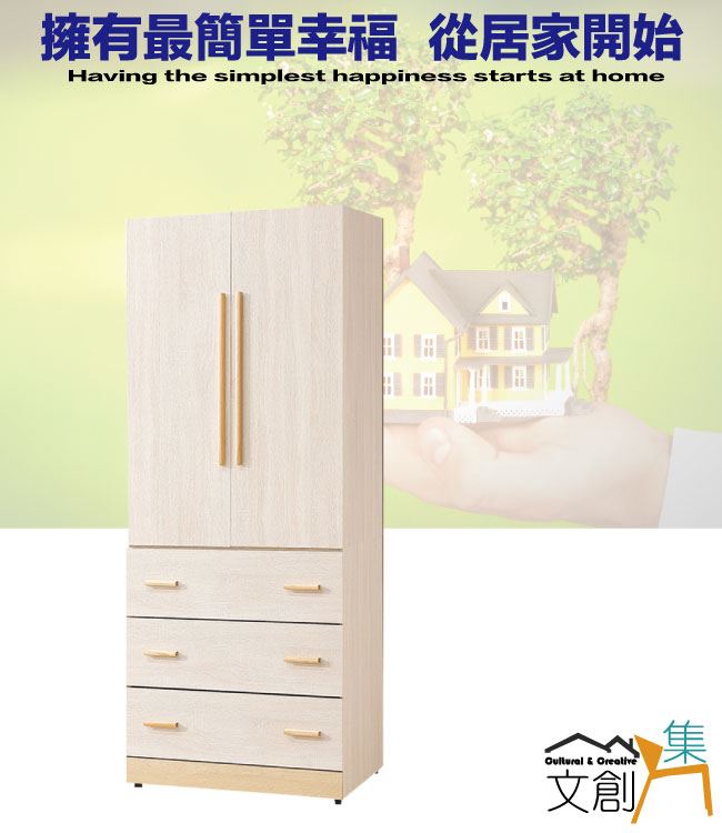 商 品 介 紹 | 【綠家居】莎蘿2.7尺二門三抽衣櫃 淺橡木紋色系+現代簡約風格+安心材質製造,使用放心+搭配居家更便利,整體採用防蛀木心板+防夾手緩衝門片五金+防潮耐磨底座+五金滑軌結構等安心材質製造搭配外層採用優莉坦耐磨全包式噴漆處理 ,採用開門櫃+吊衣桿+三抽屜+內開放層格等收納空間設計,全由專人配送到家,專業安心服務,替你省下更多時間! 【商品特色】 淺橡木紋色系+現代簡約風格+安心材質製造,使用放心+搭配居家更便利 防蛀木心板+防潮耐磨底座+防夾手緩衝門片五金+五金滑軌結構等安心材質製造 採用開門櫃+吊衣桿+三抽屜+內開放層格等收納空間設計 此商品不需要DIY組立,此商品為組立後之成品 品質保證、專業設計、貼心服務 全由專人配送到家,專業安心服務,替您省下更多時間