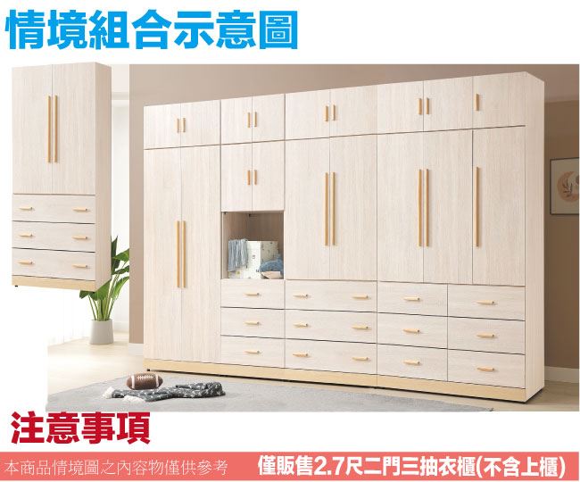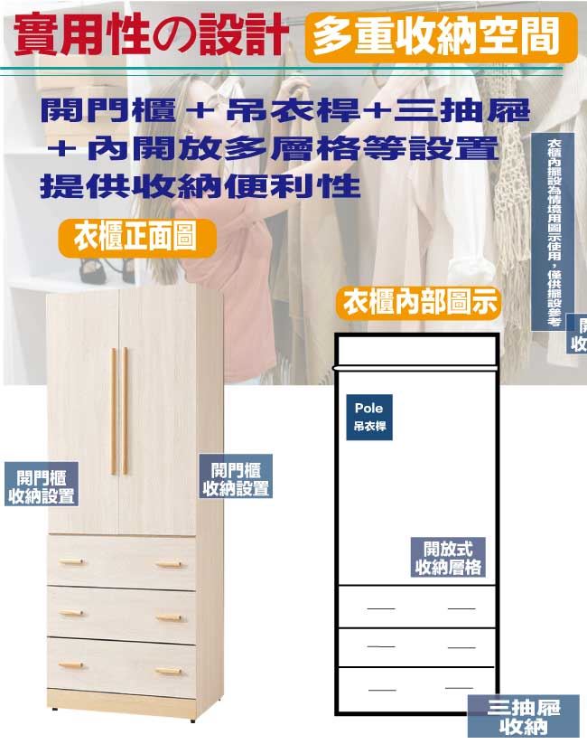 【綠家居】莎蘿2.7尺二門三抽衣櫃