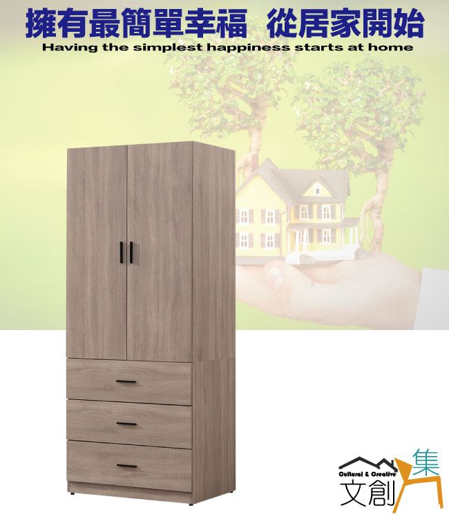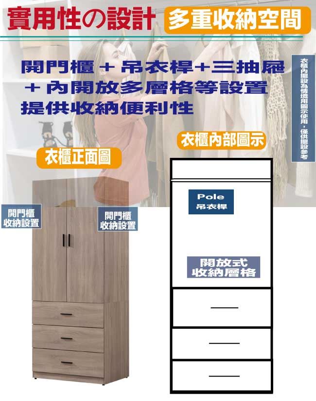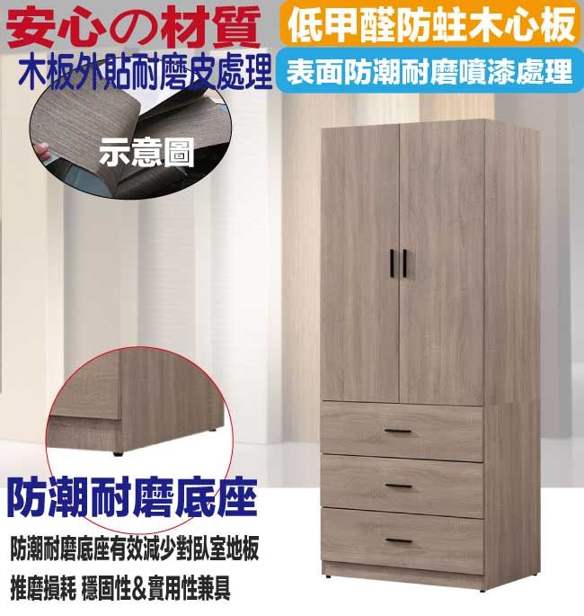 【綠家居】迪羅克2.7尺二門三抽衣櫃