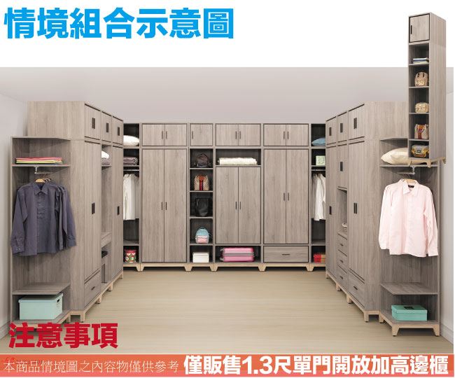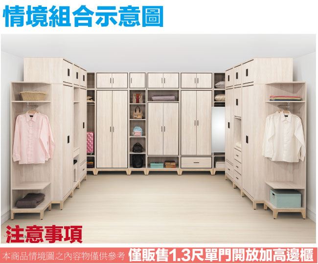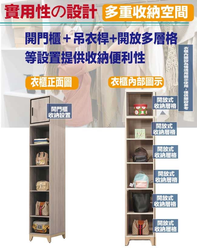 【綠家居】悅卡1.3尺單開門多格加高衣櫃組合(二色可選)
