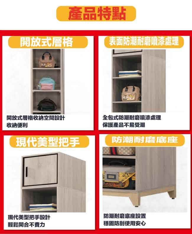 商 品 介 紹 | 【綠家居】悅卡1.3尺單開門多格加高衣櫃組合(二色可選) 二色可選+現代簡約風格+安心材質製造,使用放心+搭配居家更便利,整體採用防蛀木心板+防潮耐磨底座等安心材質製造搭配外層採用優莉坦耐磨全包式噴漆處理 ,採用開門櫃+內&外開放層格等收納空間設計,全由專人配送到家,專業安心服務,替你省下更多時間! 【商品特色】 二色可選+現代簡約風格+安心材質製造,使用放心+搭配居家更便利 防蛀木心板+防潮耐磨底座等安心材質製造 採用開門櫃+內&外開放層格等收納空間設計 此商品不需要DIY組立,此商品為組立後之成品 品質保證、專業設計、貼心服務 全由專人配送到家,專業安心服務,替您省下更多時間