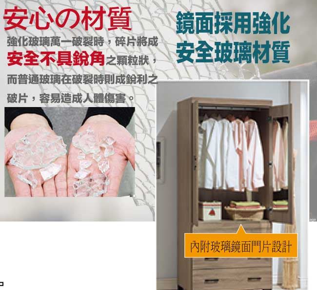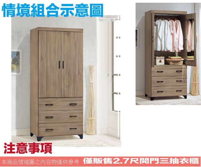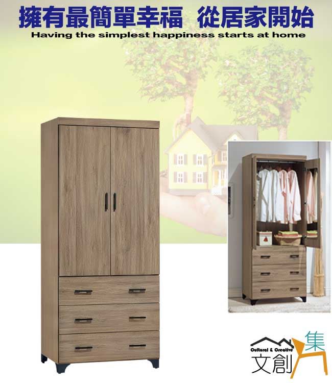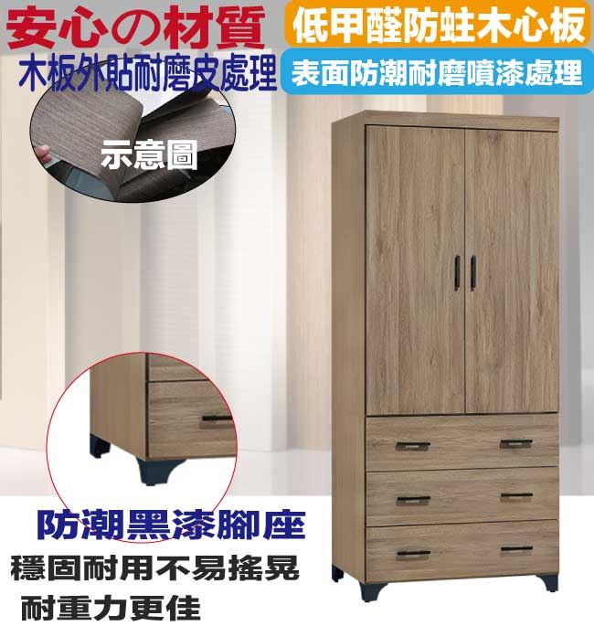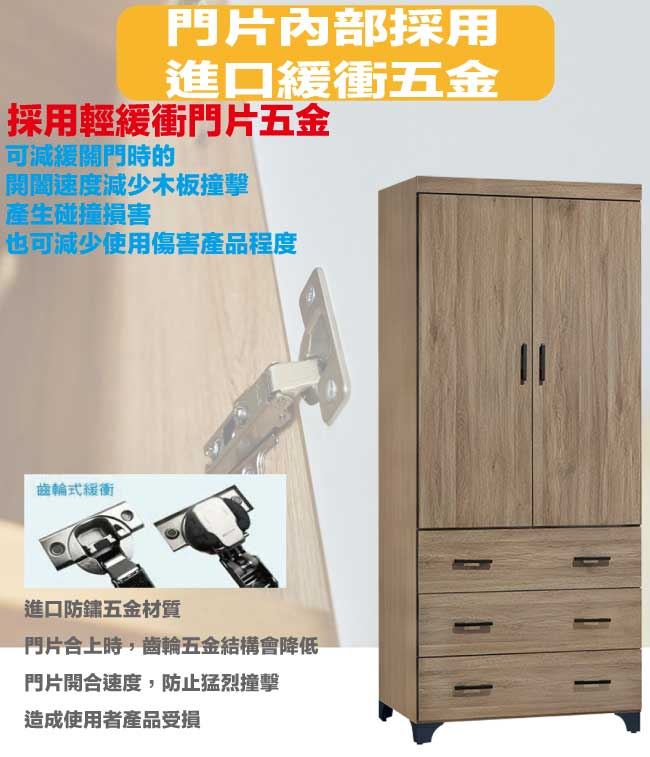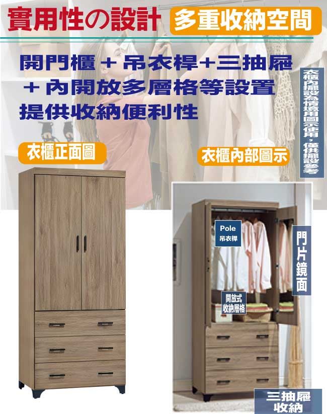 【綠家居】迪桑2.7尺二門三抽衣櫃