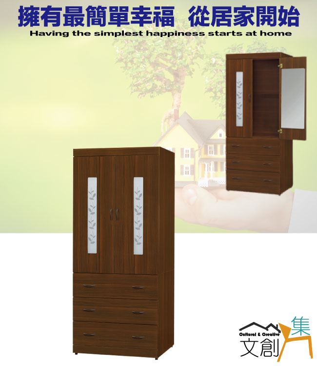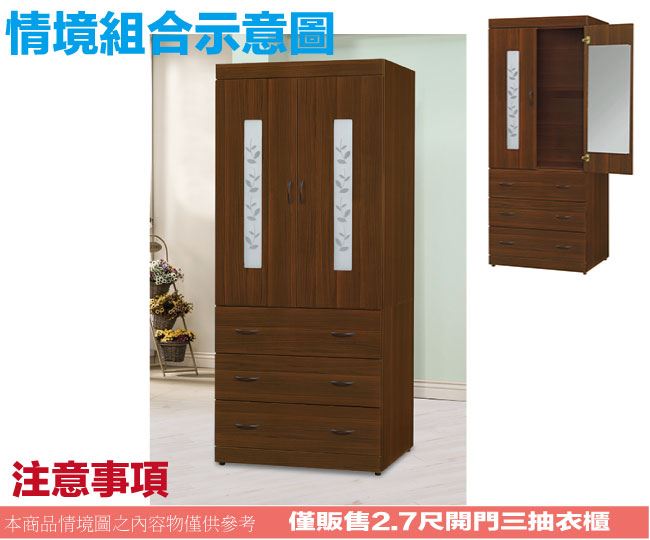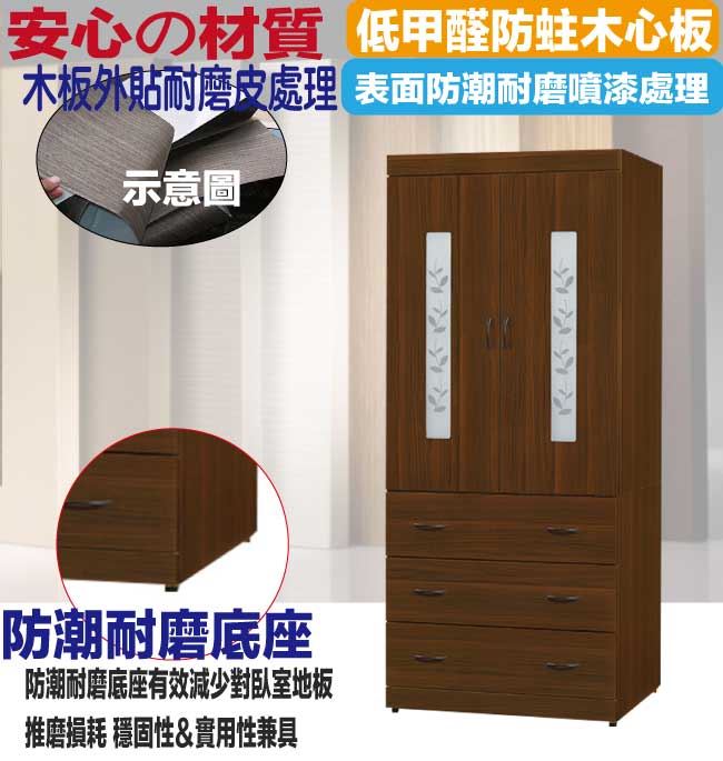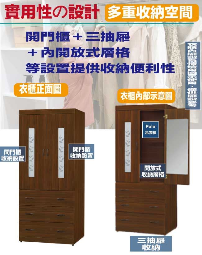 【綠家居】桑亞2.7尺二門三抽衣櫃