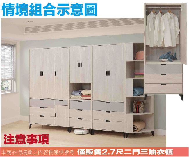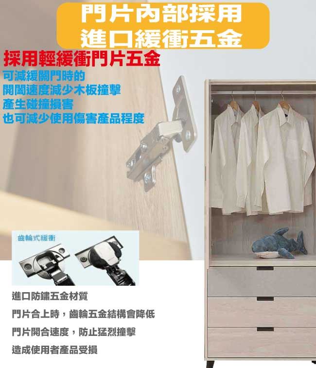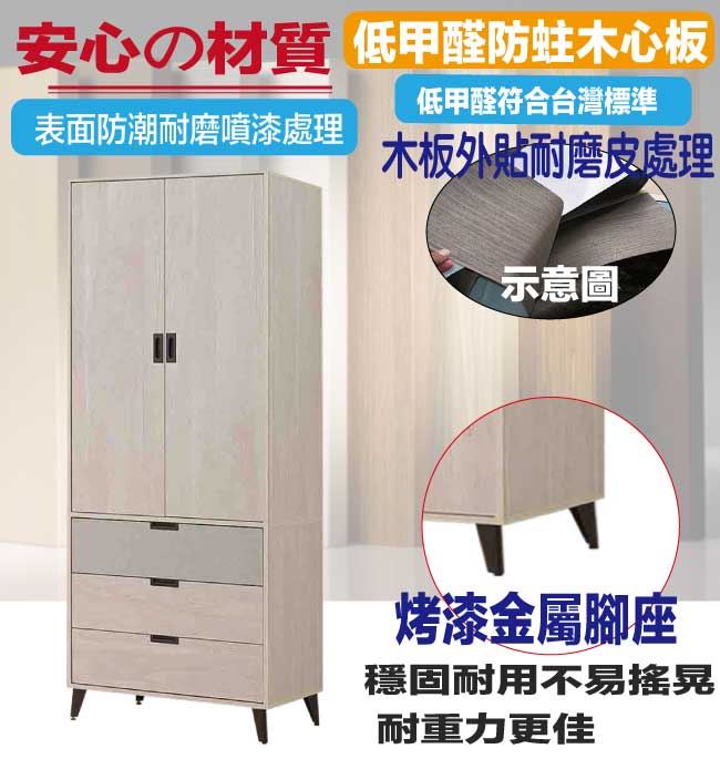 【綠家居】達斯2.7尺二門三抽衣櫃