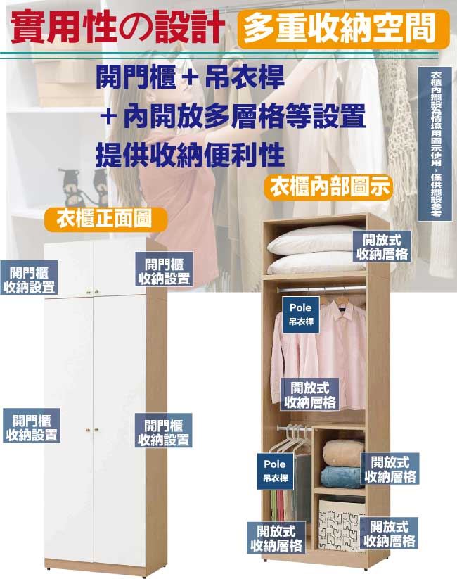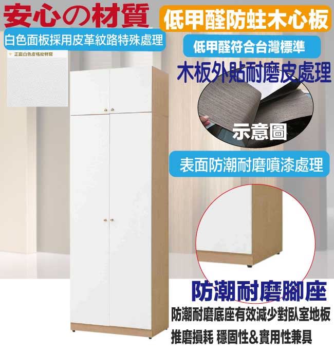 【綠家居】愛坦雙色2.5尺四門內多格加高衣櫃組合