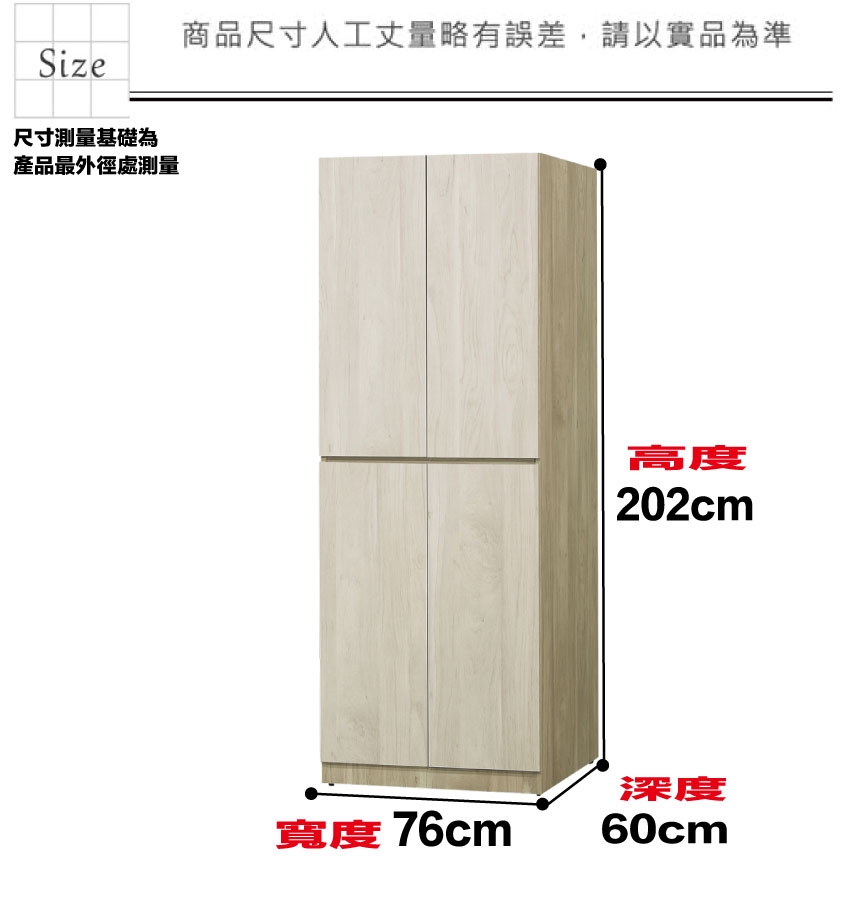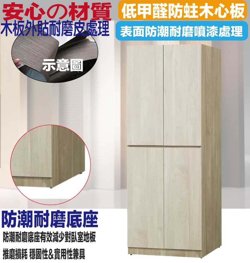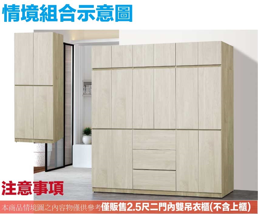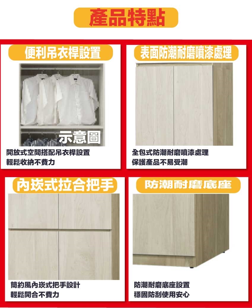 - ◆產品名稱:【綠家居】瑞歐雙色2.5尺四門雙吊衣櫃