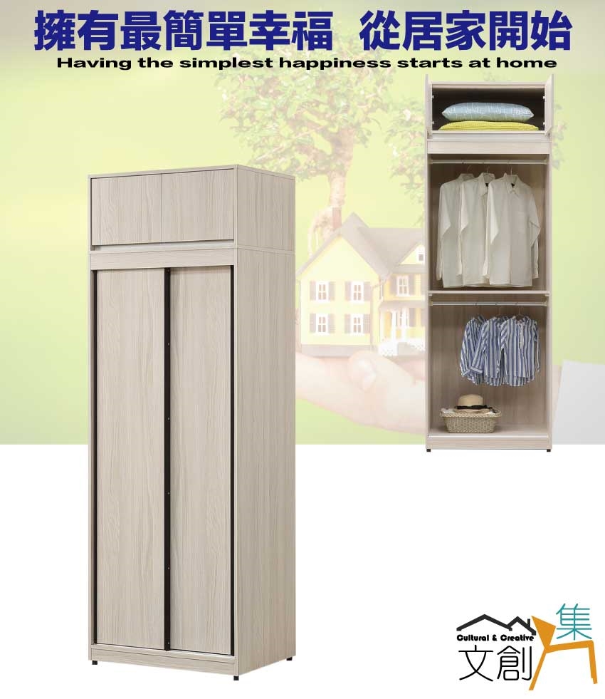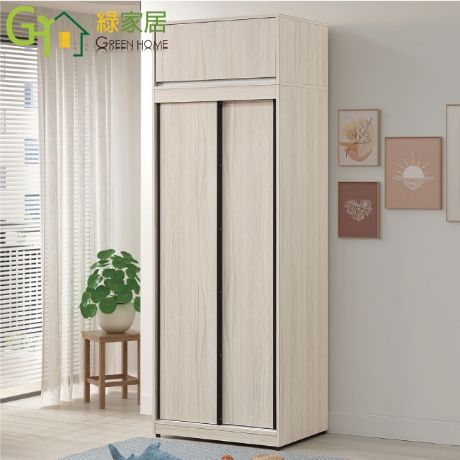 【綠家居】希望2.7尺開&推門加高衣櫃組合