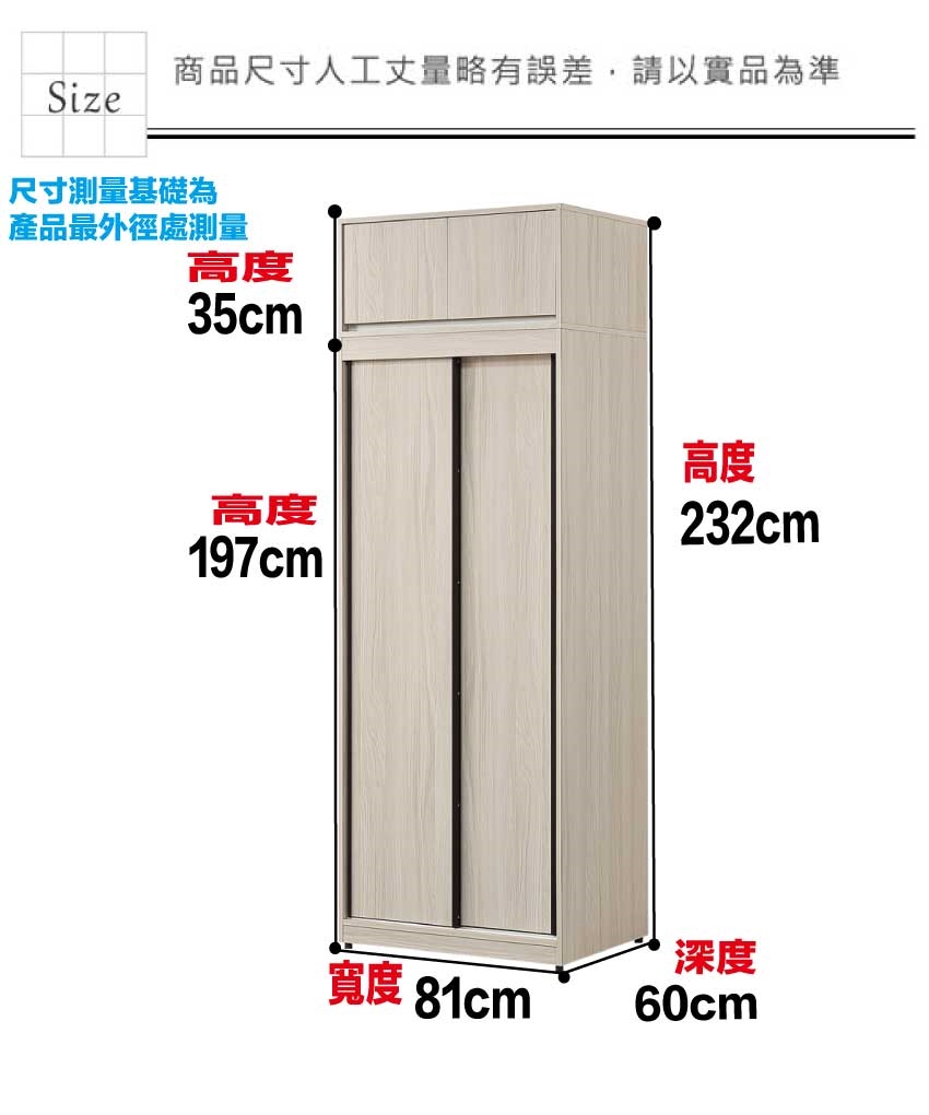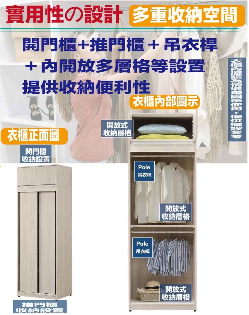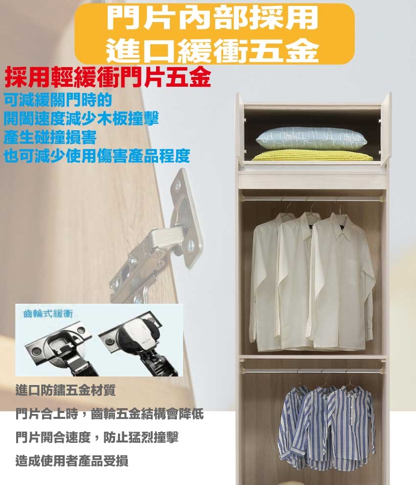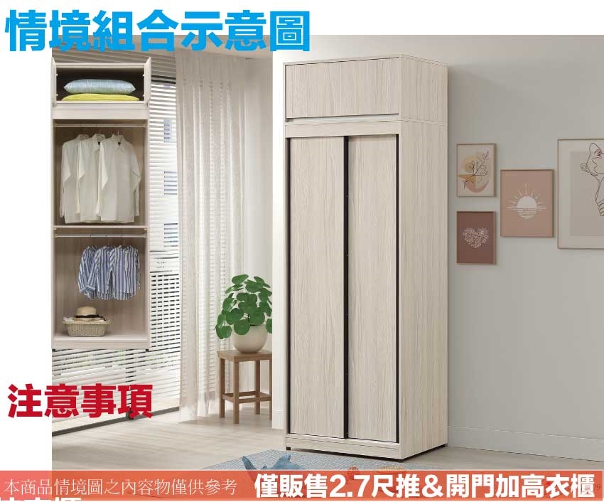 - ◆產品名稱:【綠家居】希望2.7尺開&推門加高衣櫃組合