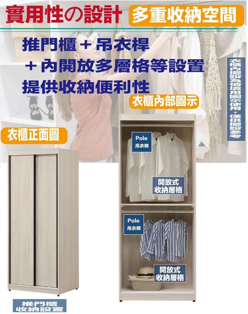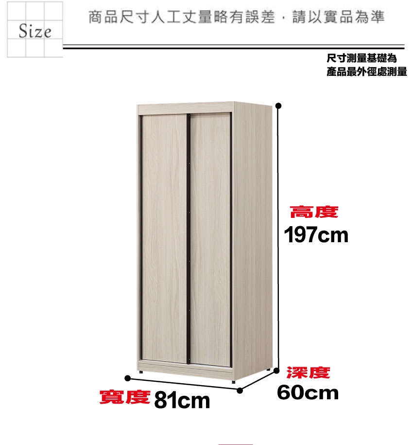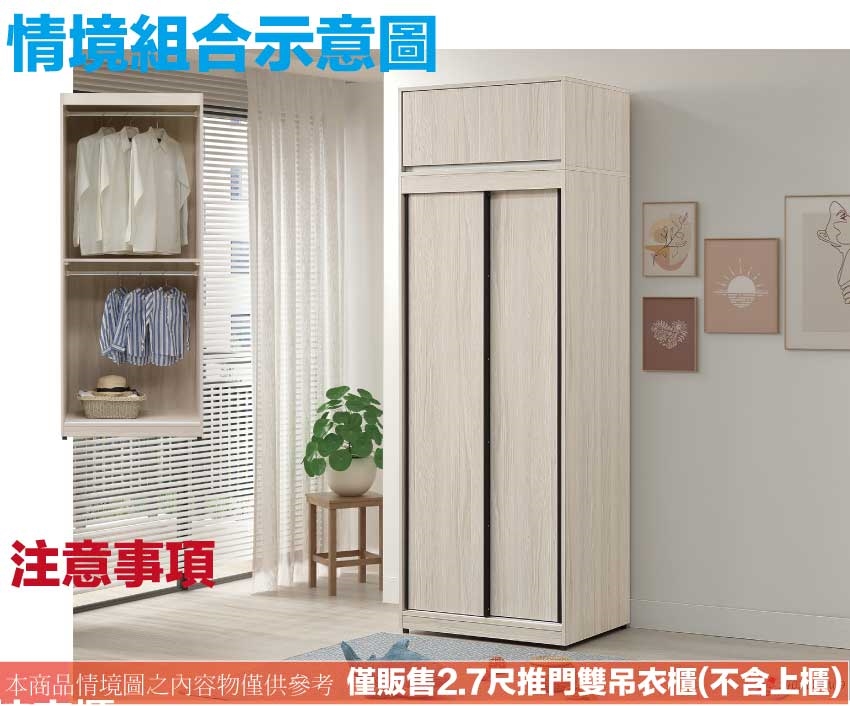- ◆產品名稱:【綠家居】希望2.7尺推門衣櫃