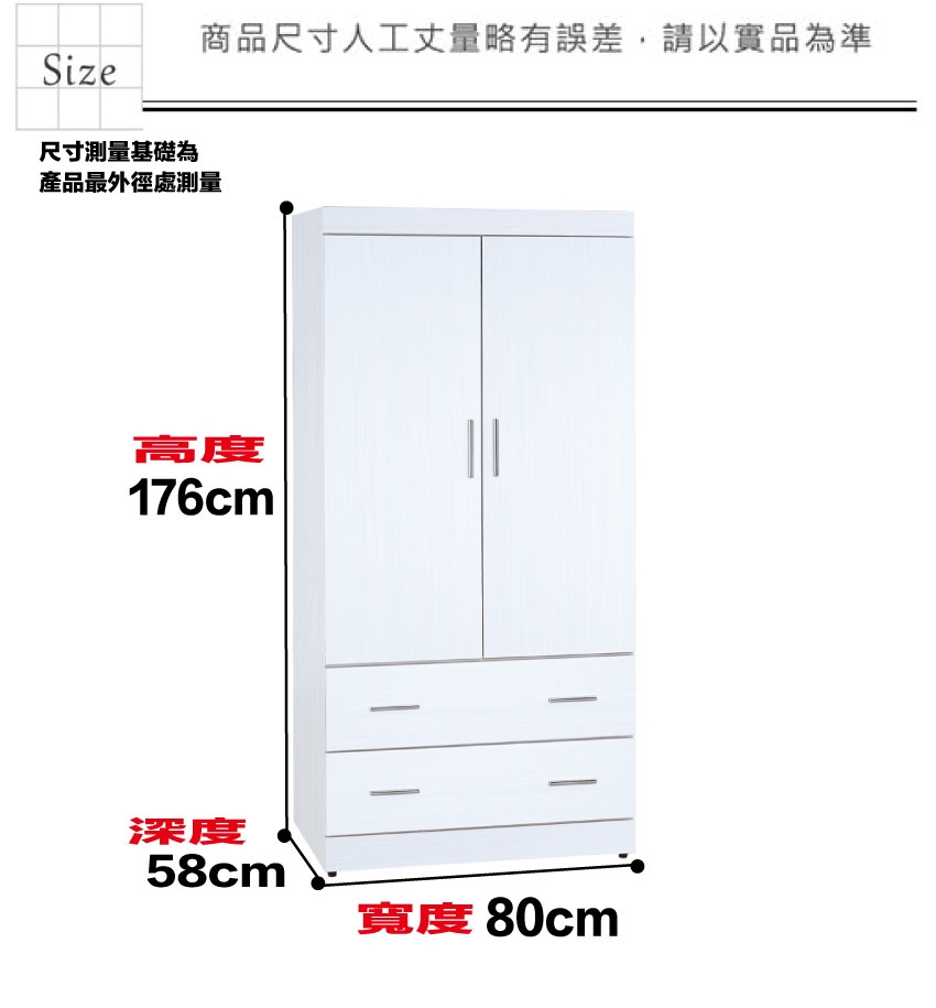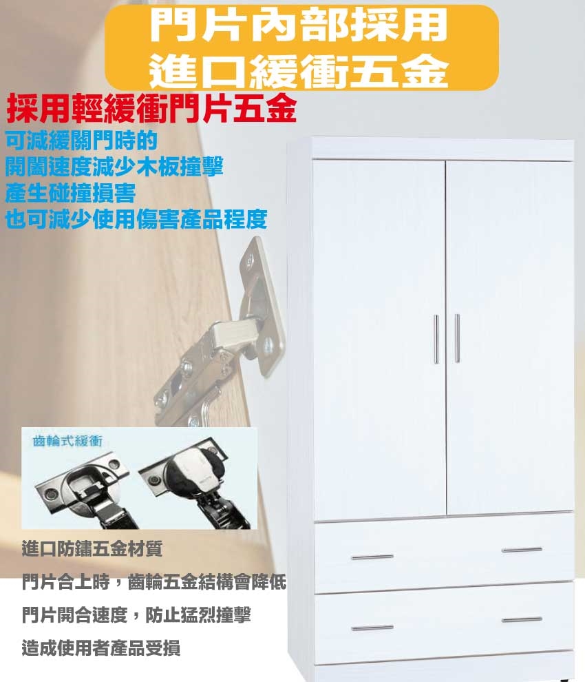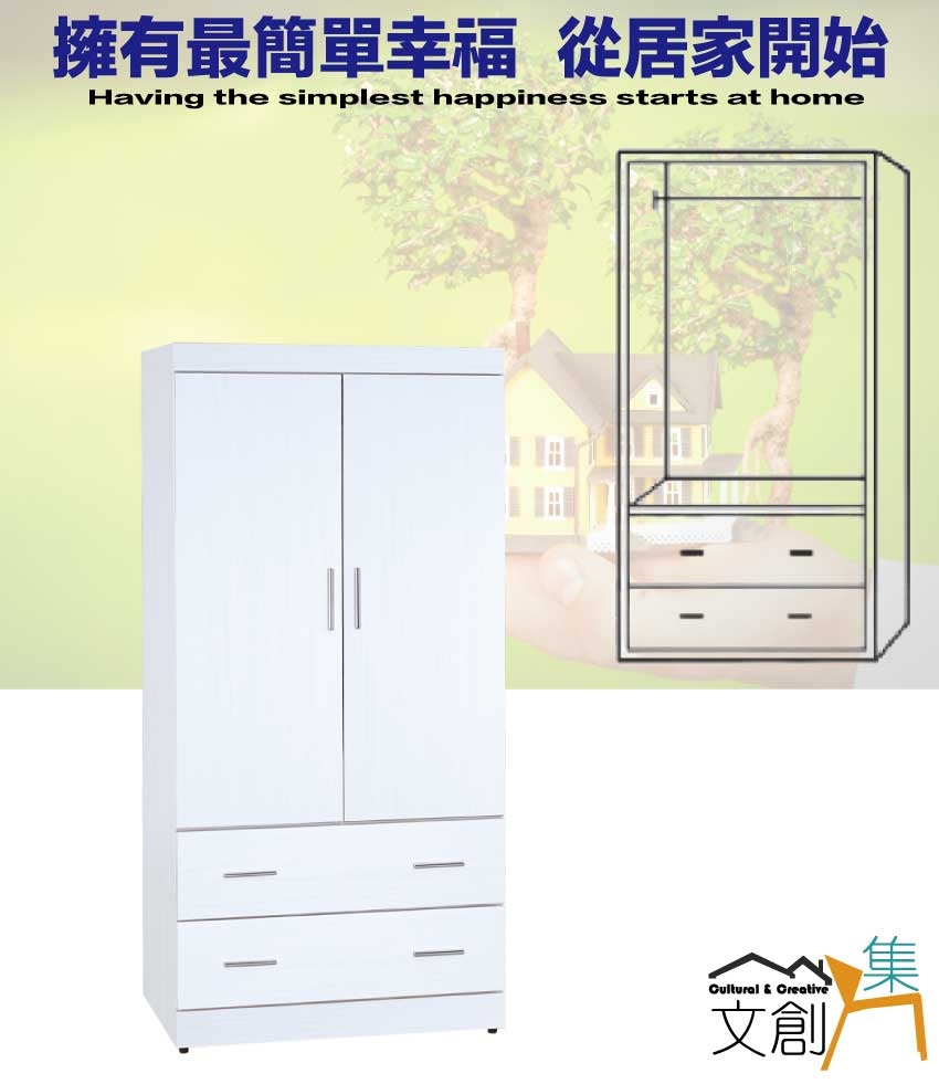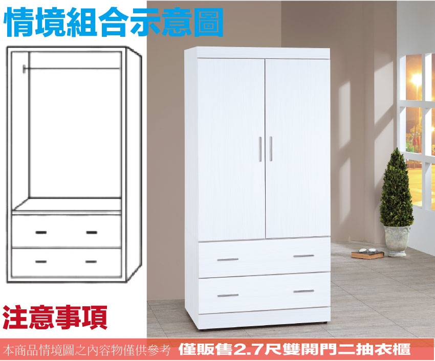 - ◆產品名稱:【綠家居】卡蒂柏2.7尺二門二抽衣櫃