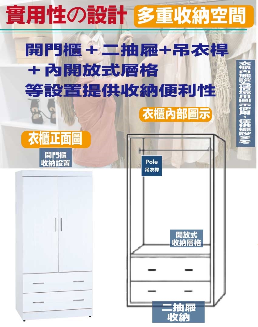 開門櫃+吊衣桿+二抽屜