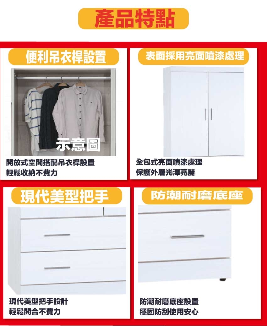 材質:防蛀木心板+防潮耐磨底座+五金滑軌結構+防夾手緩衝門片五金