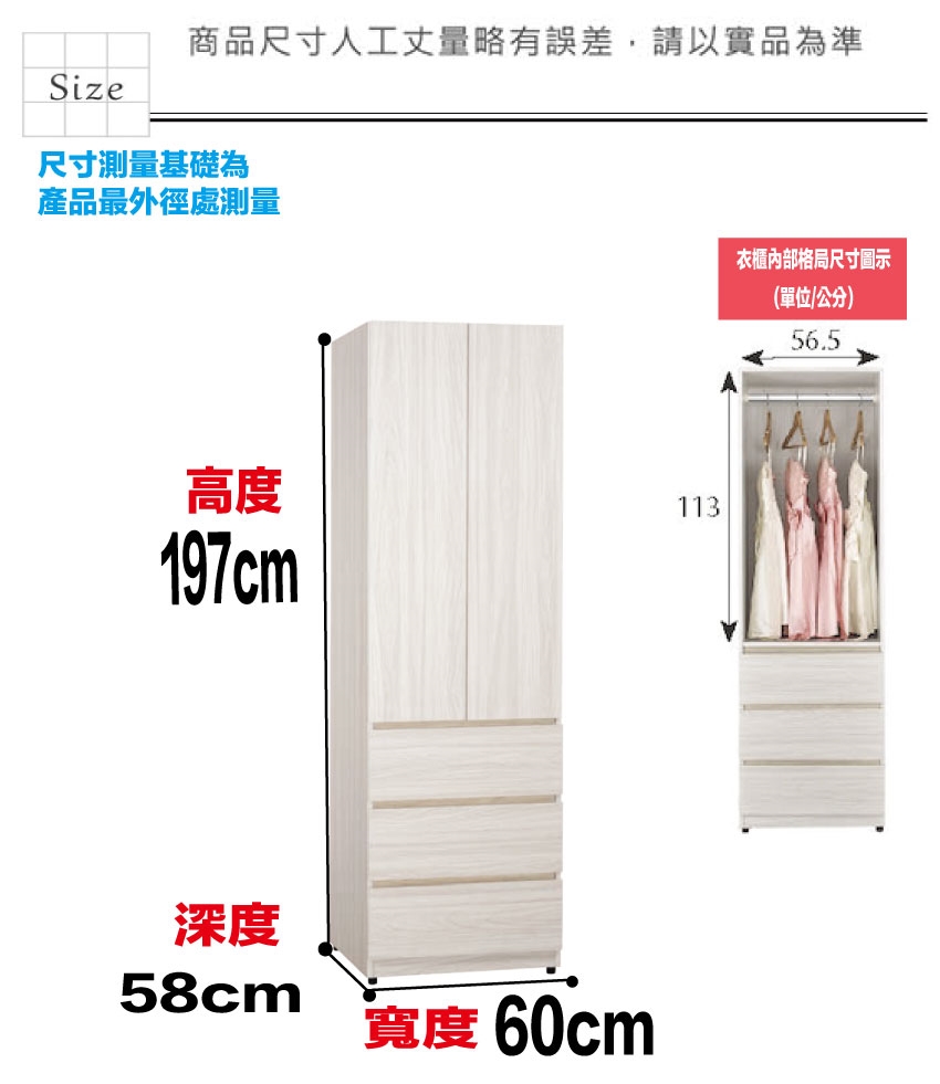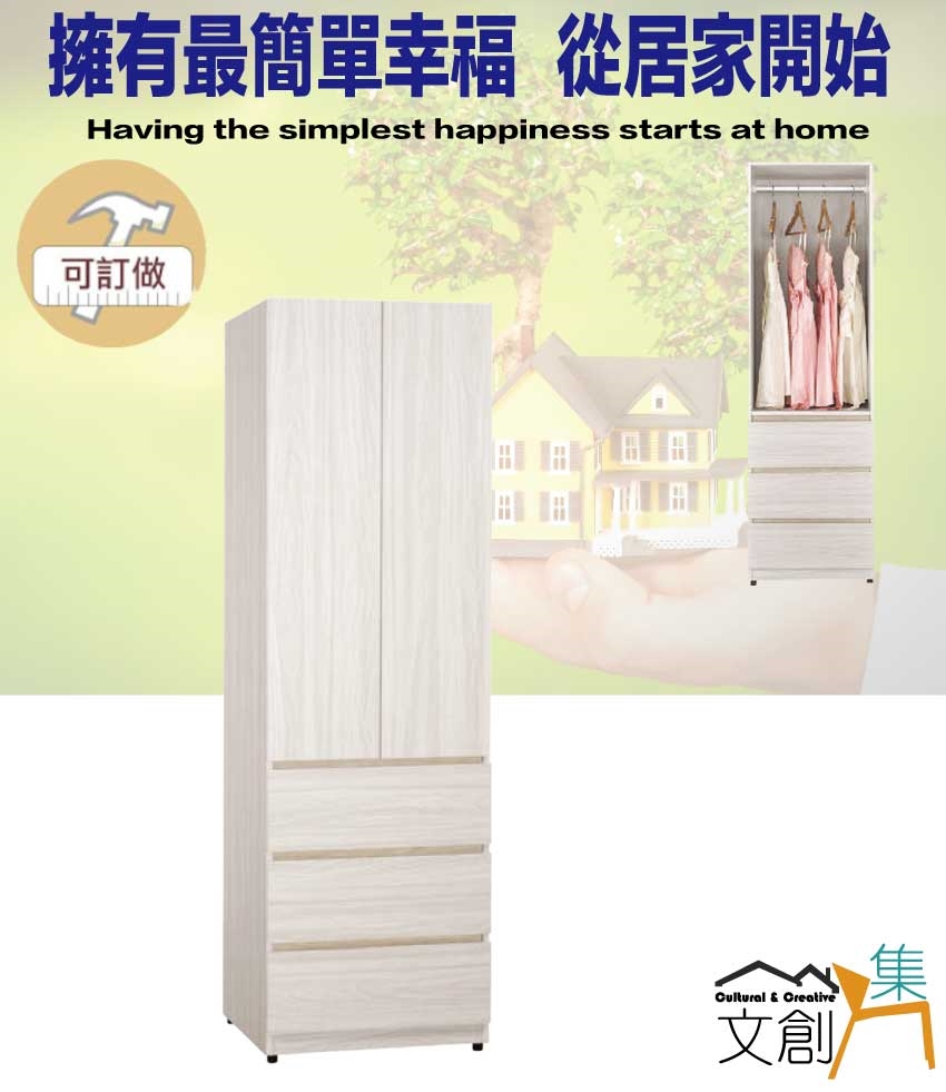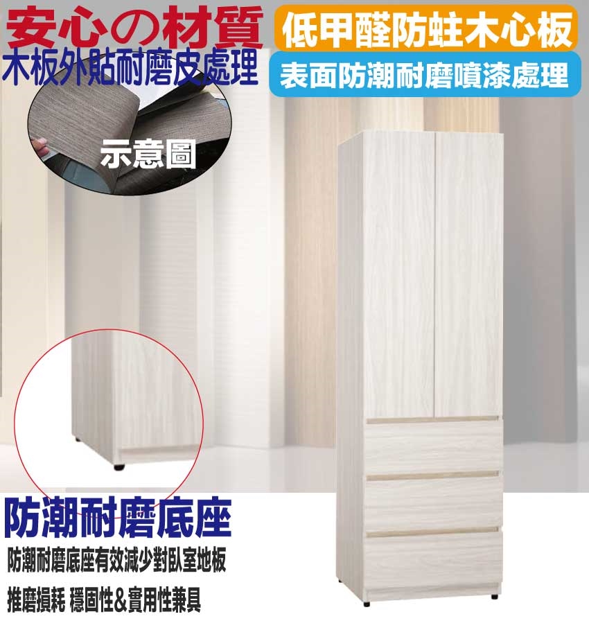 - ◆產品名稱:【綠家居】寶亞2尺開門三抽衣櫃
