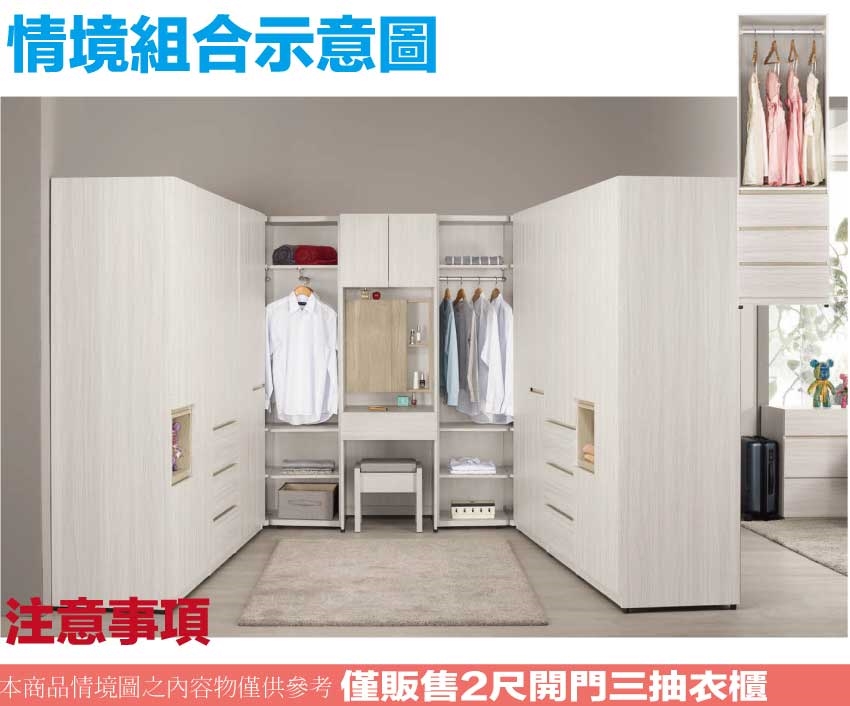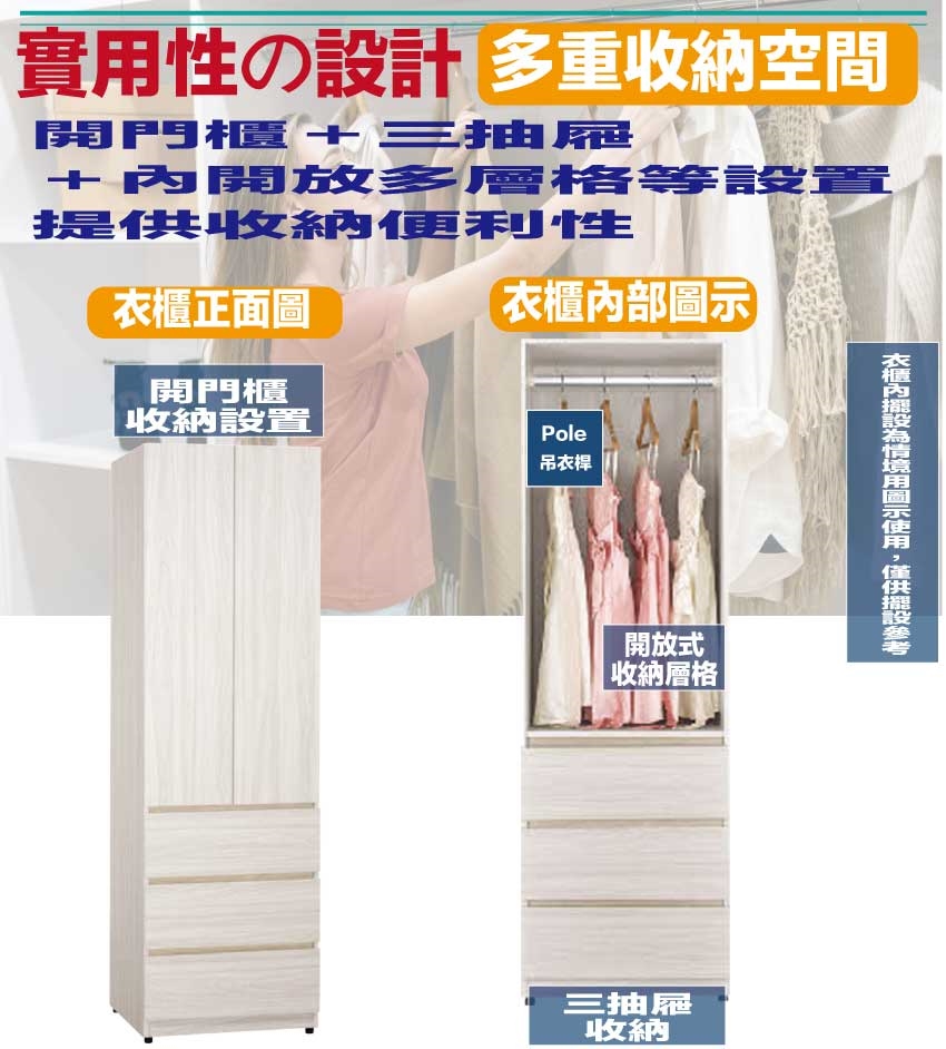 開門櫃+吊衣桿+三抽屜