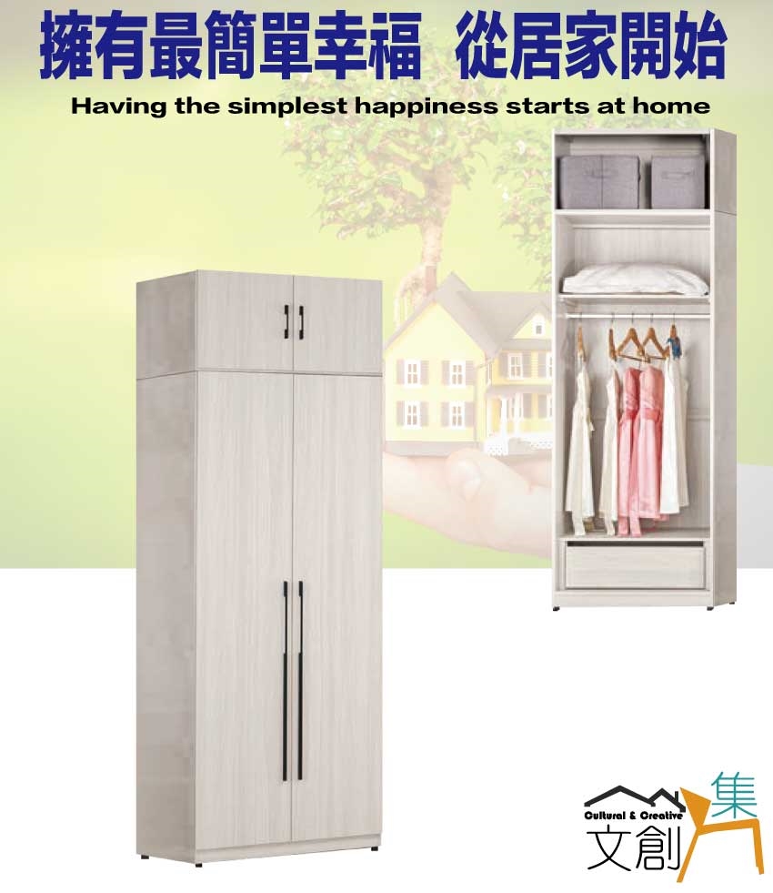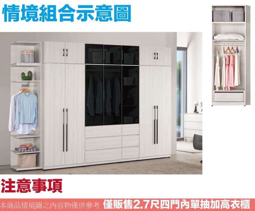 - ◆產品名稱:【綠家居】朵利2.7尺四門內單抽加高衣櫃組合