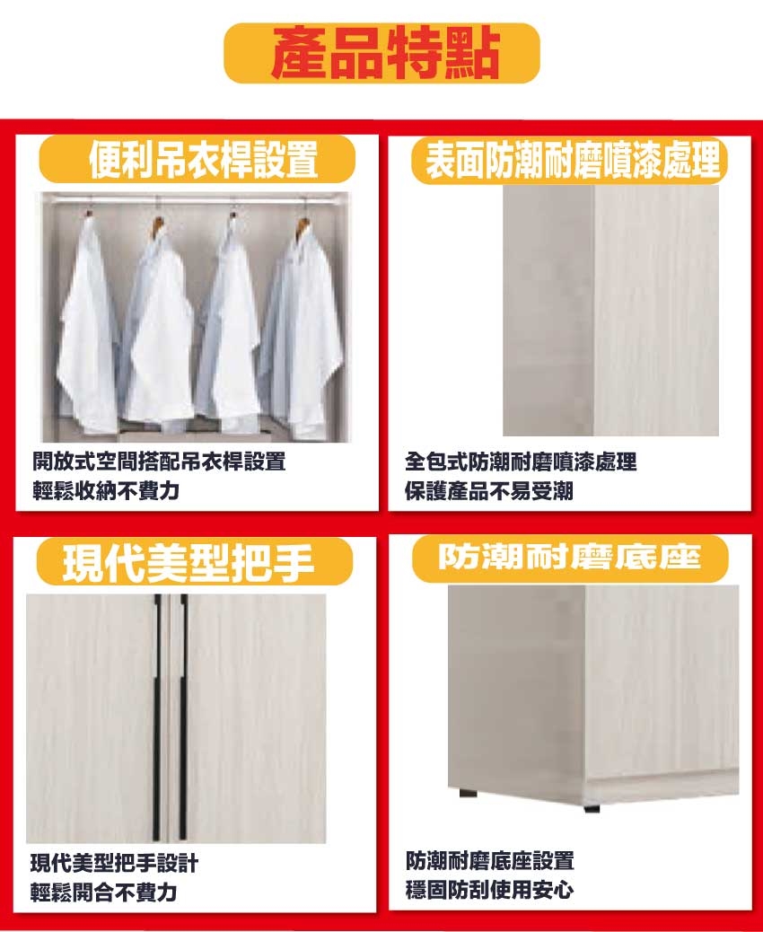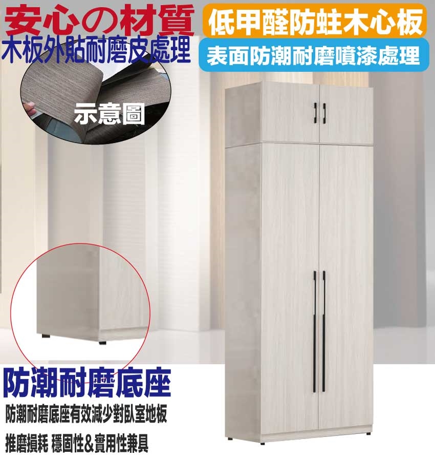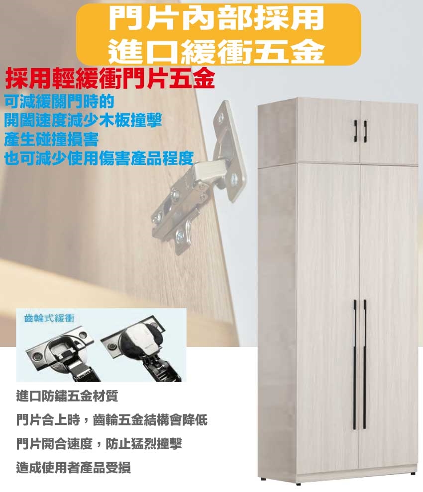 材質:防蛀木心板+防潮耐磨腳座+防夾手緩衝門片五金+五金滑軌結構