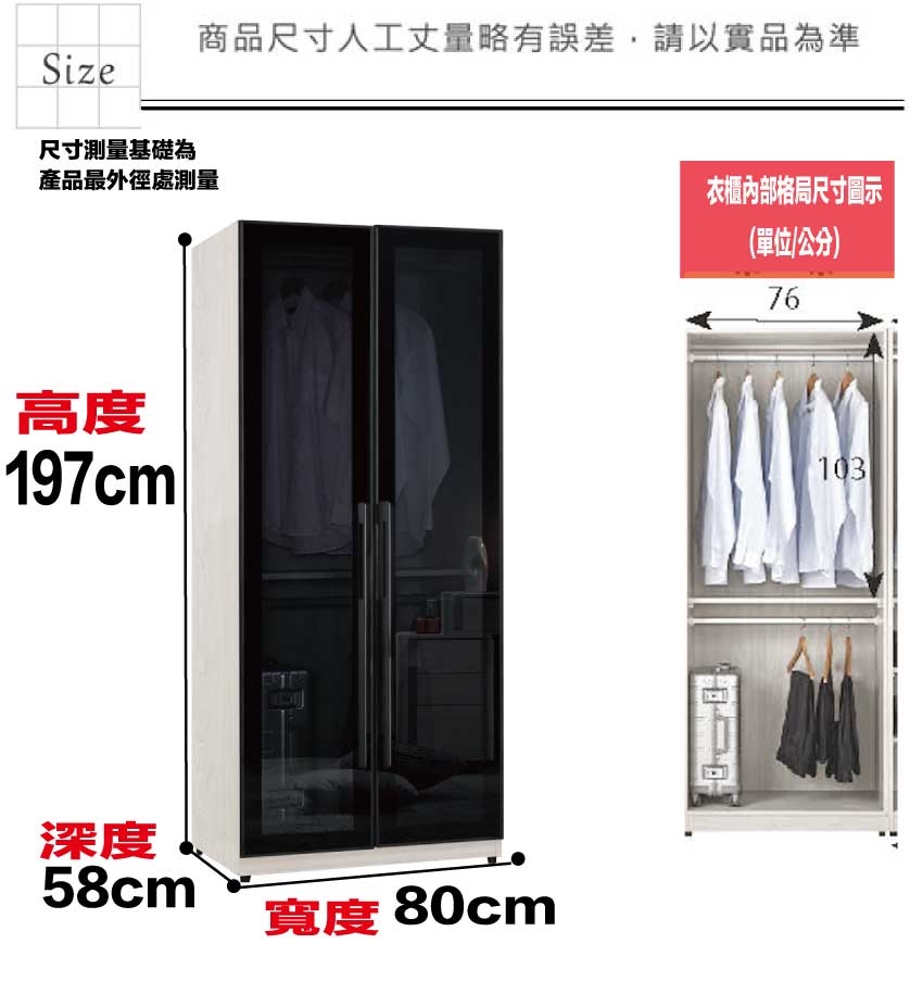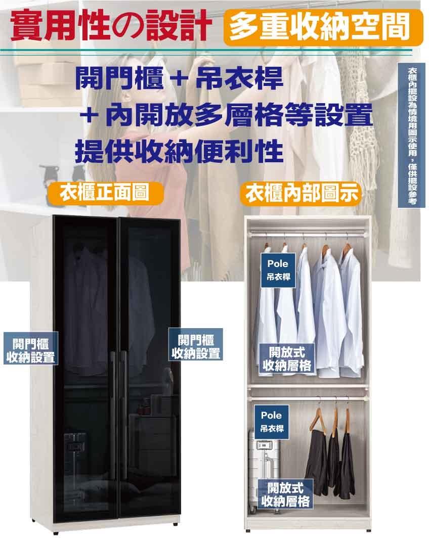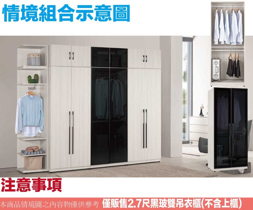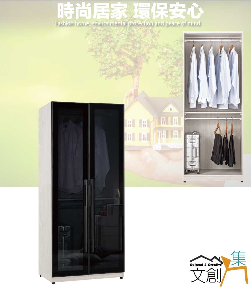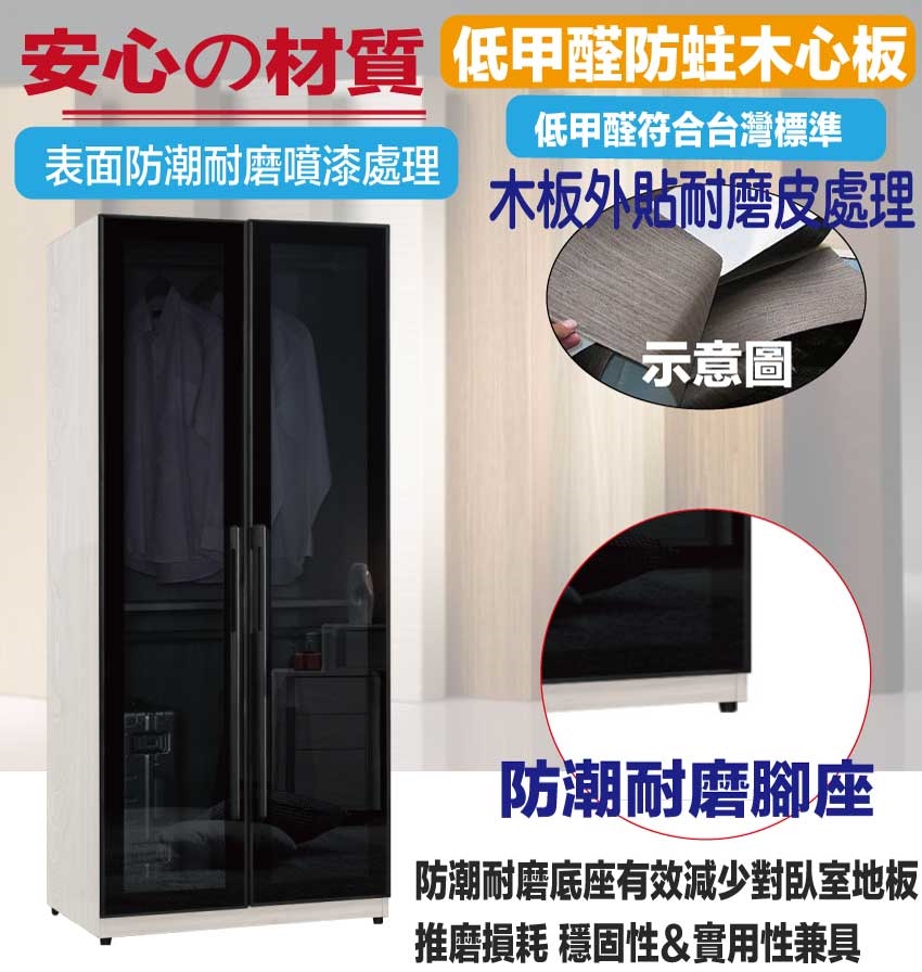 - ◆產品名稱:【綠家居】朵利2.7尺鋁門黑玻衣櫃