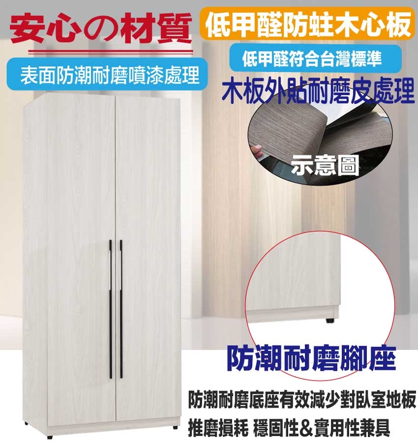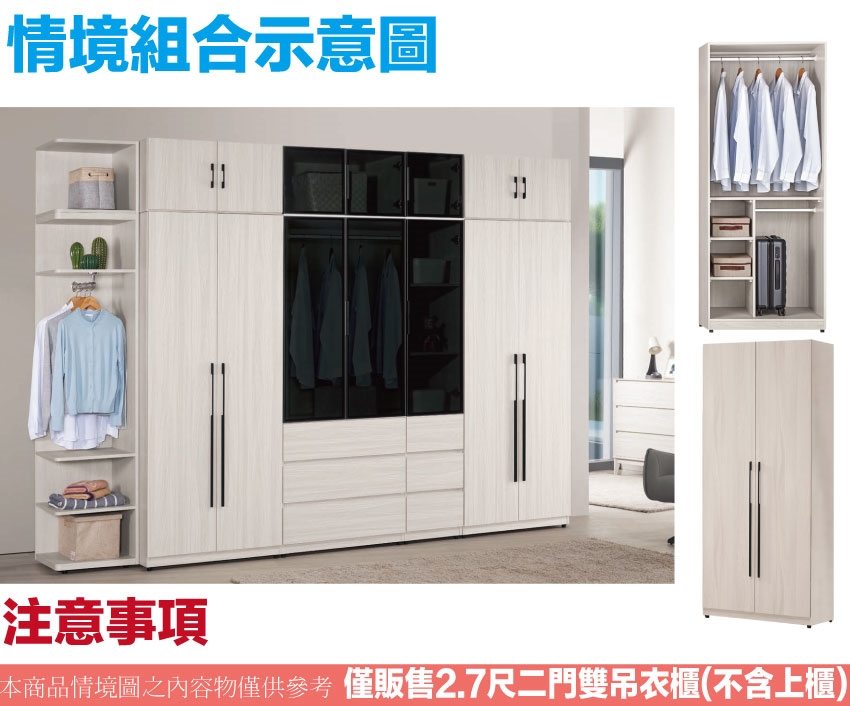 【綠家居】朵利2.7尺四門雙吊多格衣櫃
