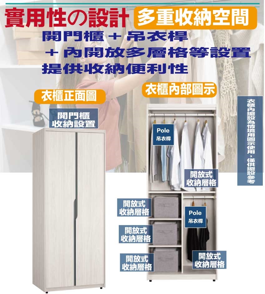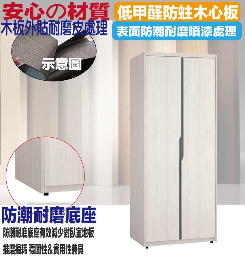 - ◆產品名稱:【綠家居】丹尼2.7尺二門雙吊多格衣櫃