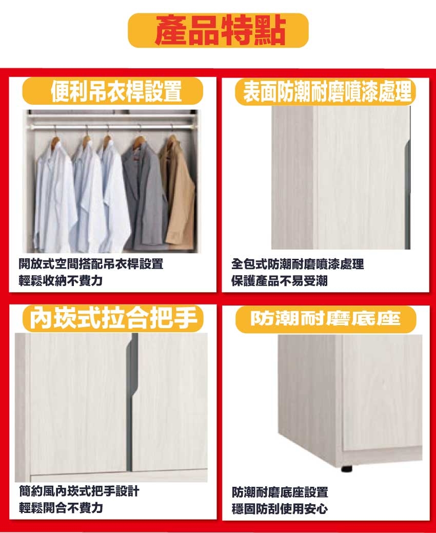 材質:防蛀木心板+防潮耐磨腳座+防夾手緩衝門片五金