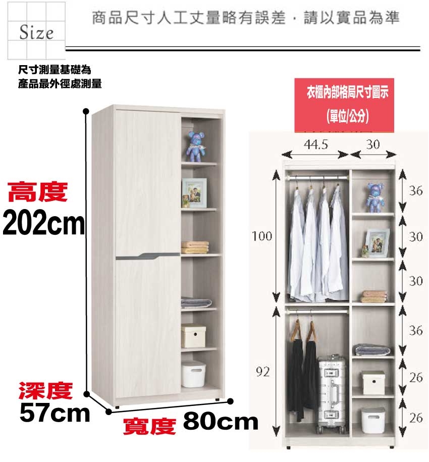 - ◆產品名稱:【綠家居】丹尼2.7尺二門雙吊半開放衣櫃