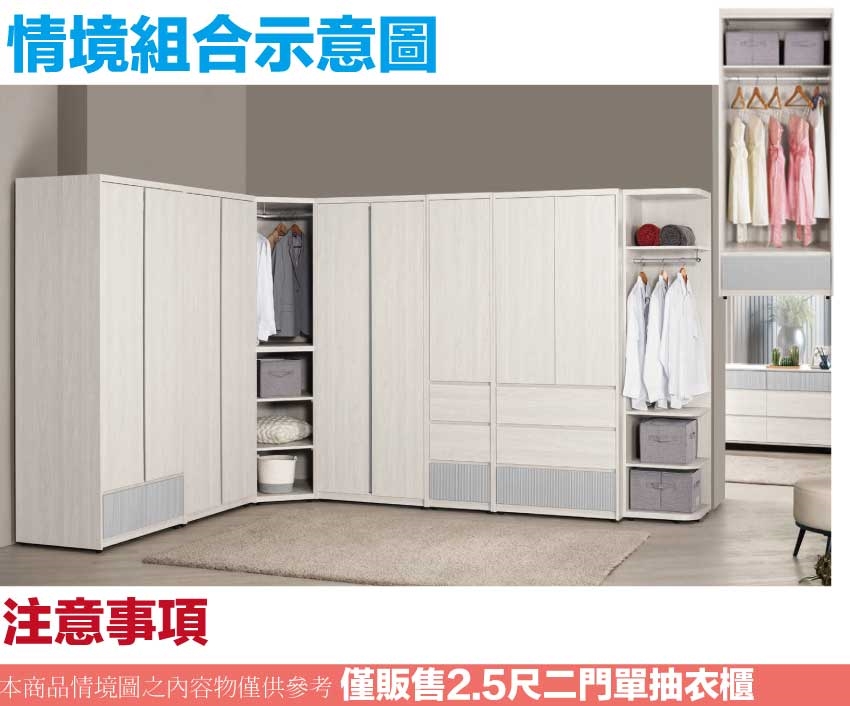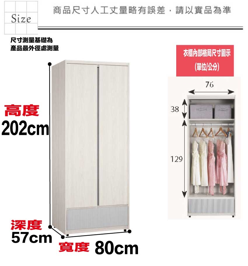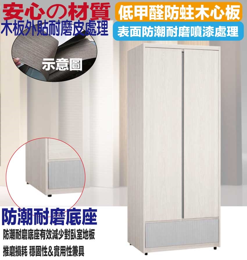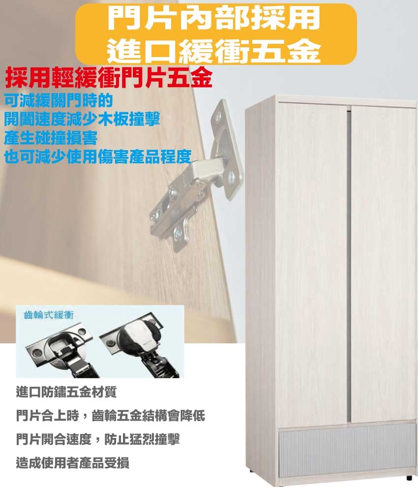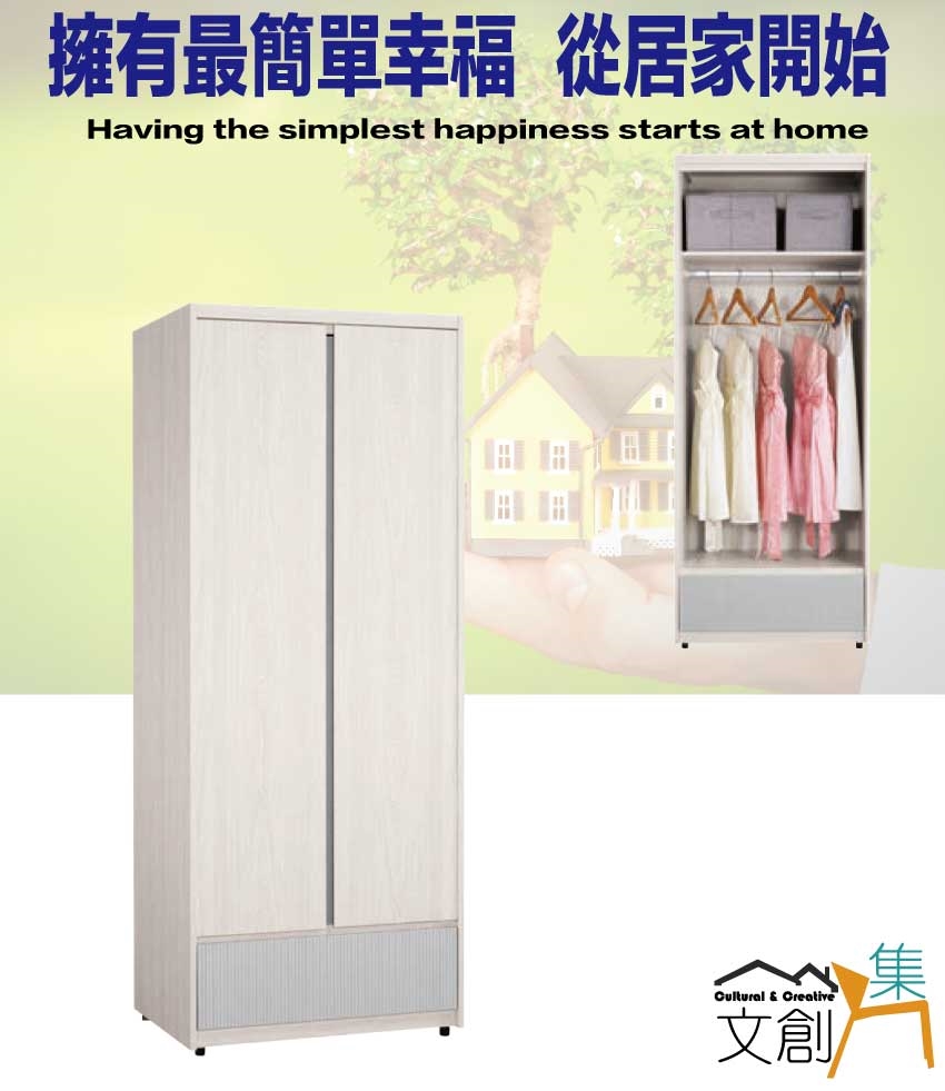 - ◆產品名稱:【綠家居】克萊雙色2.7尺二門單抽衣櫃