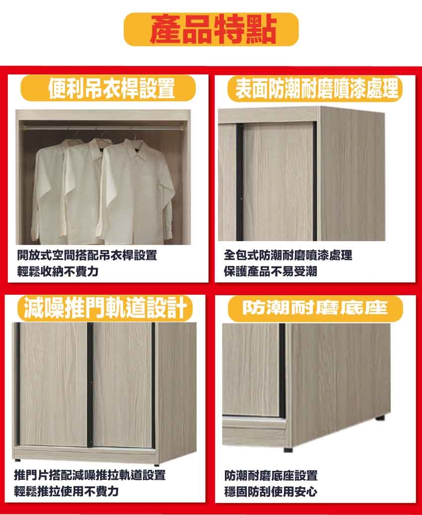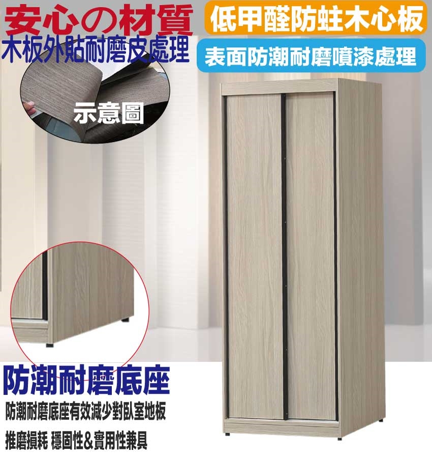 ★偏遠地區需額外加收運費,下標請先問與答詢問★ ★下訂前注意 由於商品流動較快,下訂前請先詢問是否有貨在下訂喔~★ 【綠家居】范巴2.7尺推門雙吊衣櫃 橡木紋色系+安心材質製造,使用放心+搭配居家更便利,採用防蛀木心板+防潮耐磨底座等安心材質製造 ,外層採用防潮耐磨噴漆處理搭配採用推門櫃+吊衣桿+內開放層格等收納空間設計,全由專人配送到家,專業安心服務,替你省下更多時間!