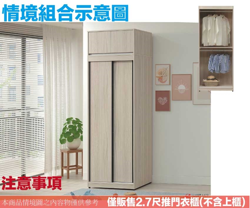 【綠家居】范巴2.7尺推門雙吊衣櫃