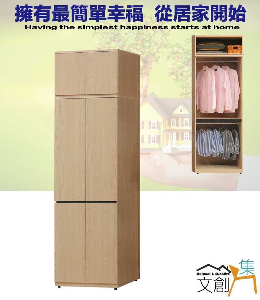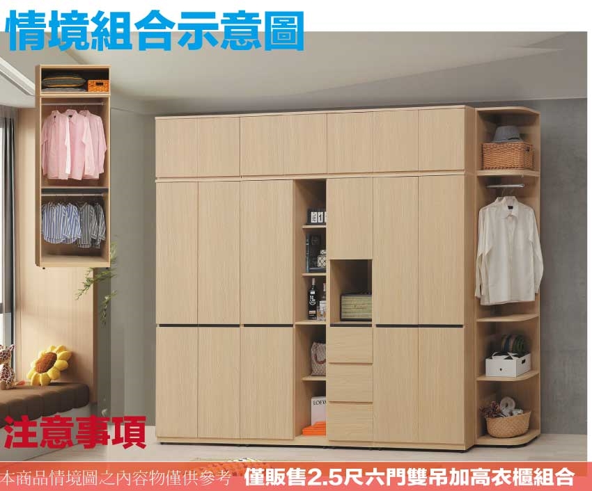 - ◆產品名稱:【綠家居】巴米2.5尺開門內單抽加高衣櫃組合