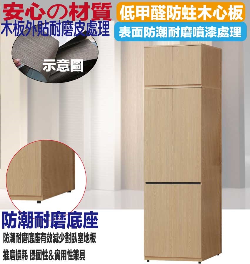 【綠家居】巴米2.5尺開門內單抽加高衣櫃組合 橡木紋色系+安心材質製造,使用放心+搭配居家更便利,採用防蛀木心板+防潮耐磨底座+五金滑軌結構等安心材質製造 ,外層採用防潮耐磨噴漆處理搭配採用開門櫃+吊衣桿+單抽屜+內開放層格等收納空間設計,全由專人配送到家,專業安心服務,替你省下更多時間!