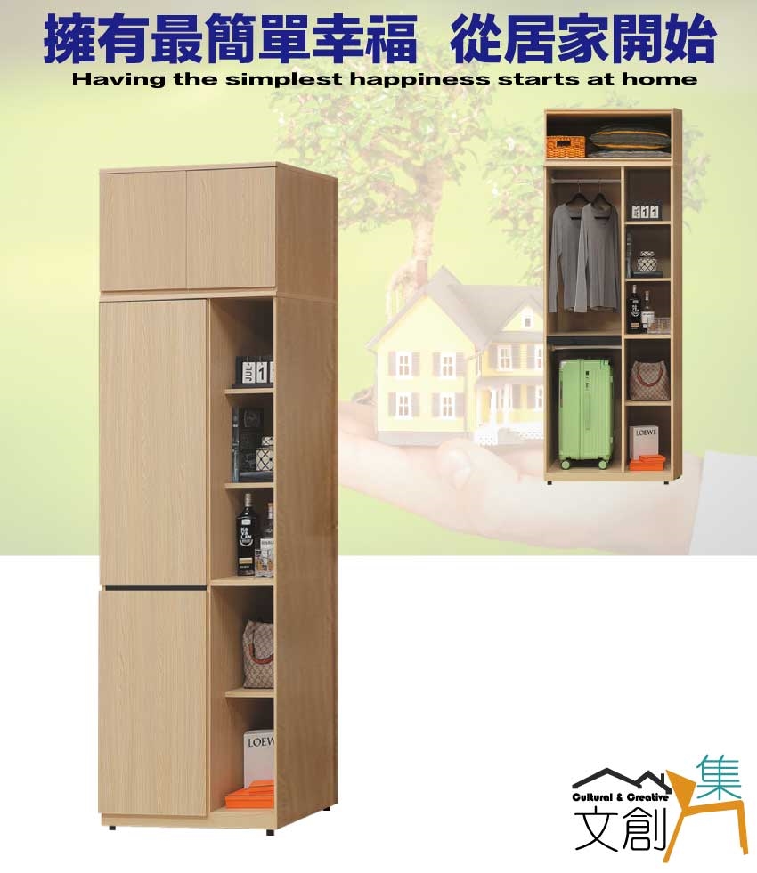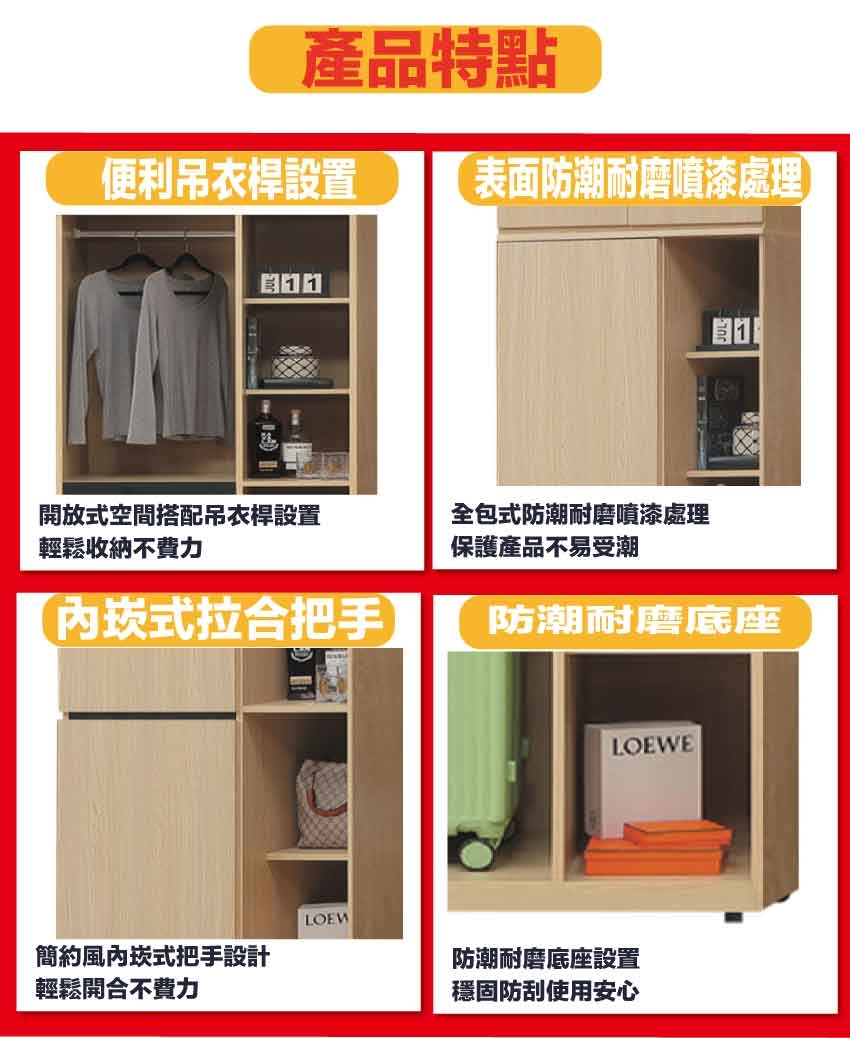 - ◆產品名稱:【綠家居】巴米2.5尺開門半開放加高衣櫃組合
