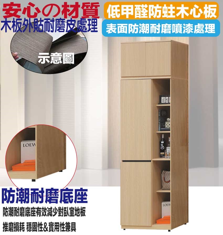 ★偏遠地區需額外加收運費,下標請先問與答詢問★ ★下訂前注意 由於商品流動較快,下訂前請先詢問是否有貨在下訂喔~★ 【綠家居】巴米2.5尺開門半開放加高衣櫃組合 橡木紋色系+安心材質製造,使用放心+搭配居家更便利,採用防蛀木心板+防潮耐磨底座等安心材質製造 ,外層採用防潮耐磨噴漆處理搭配採用開門櫃+吊衣桿+內&外開放層格等收納空間設計,全由專人配送到家,專業安心服務,替你省下更多時間!